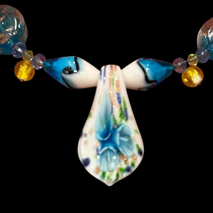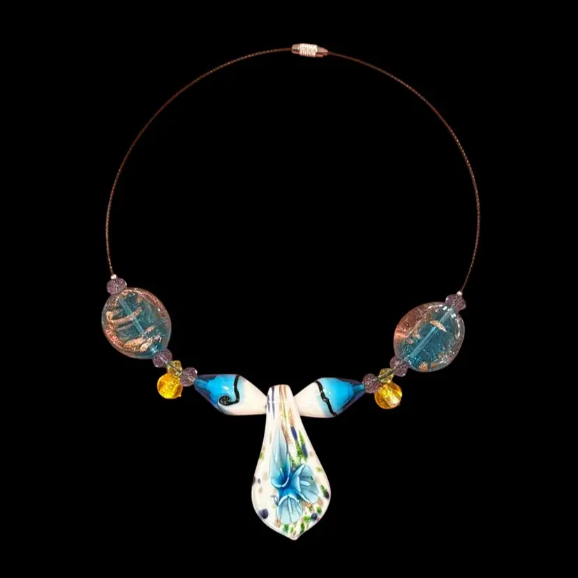 Women's Fashion Glass Pendant Necklaces Stunning Teardrop on wire chocker