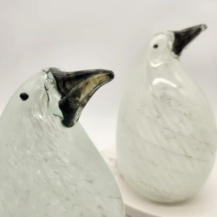 Keywords: glass art, animal decor, penguin collectible, swirl glass, blown glass, winter decor, whimsical, artisan, handcrafted, accent piece