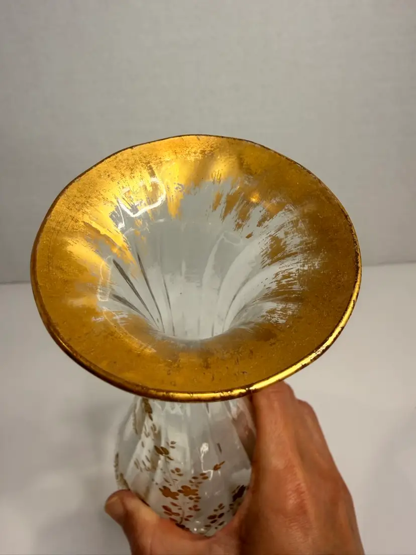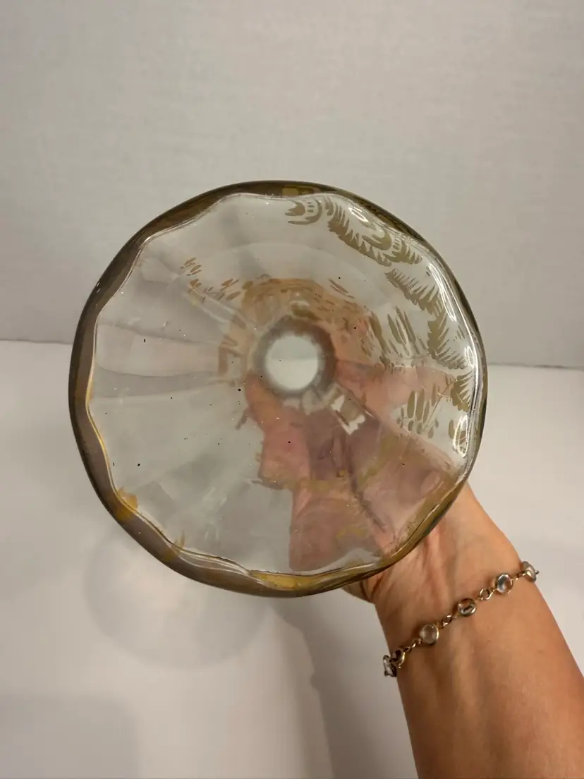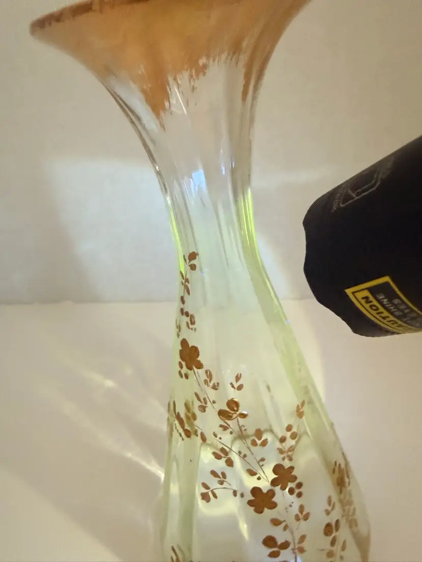 Gold design is all intact. No chips or cracks. 7.5” high.
