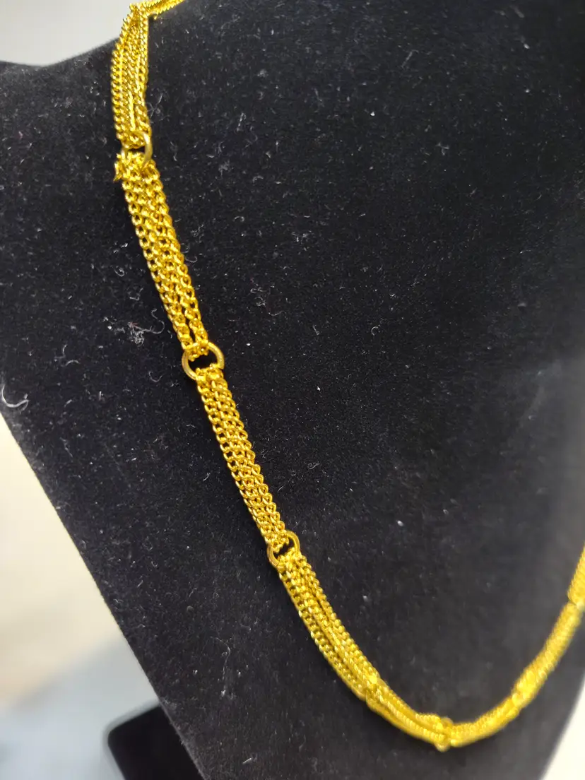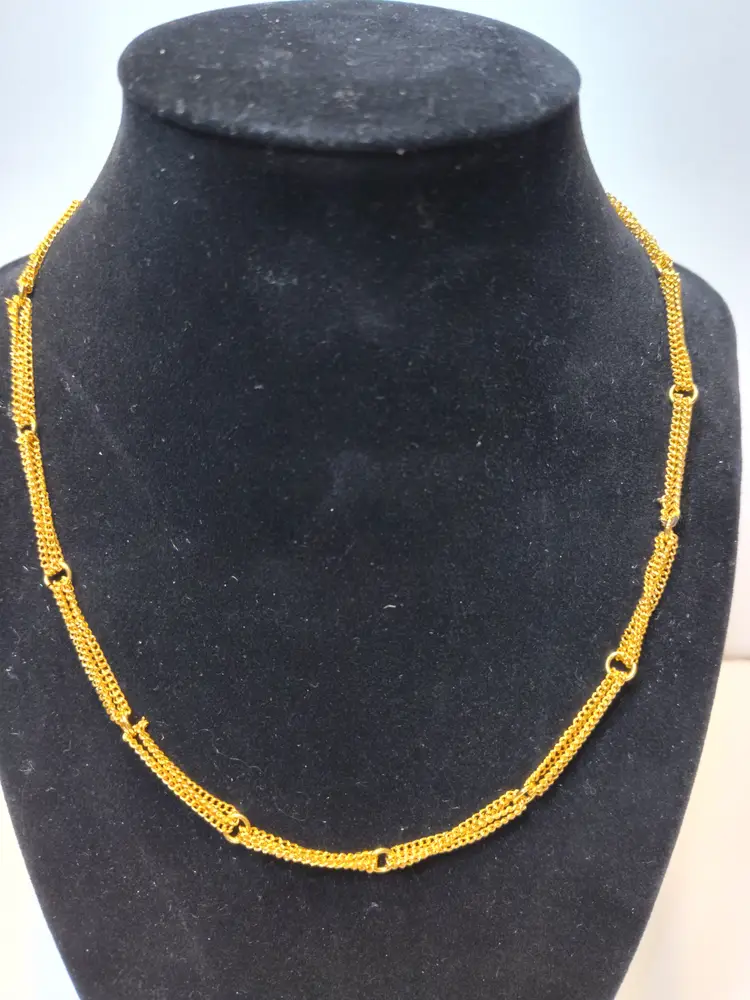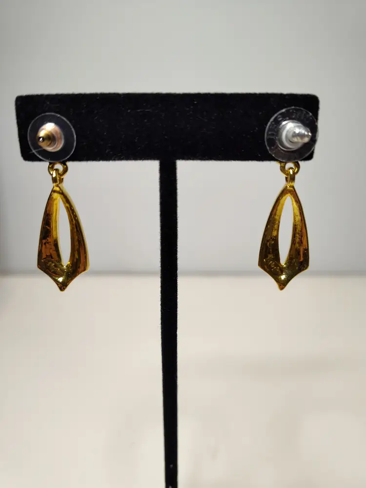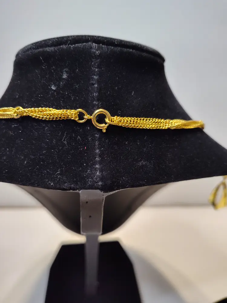 16" Gold tone necklace with spring ring clasp, 2.5" pink & gold glitter bangel bracelet and 1.5" gold tone vintage Napier post earrings