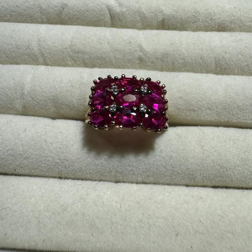 Good Over Sterling Ruby Cluster Ring Sz 9