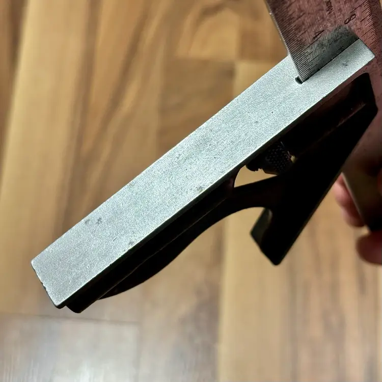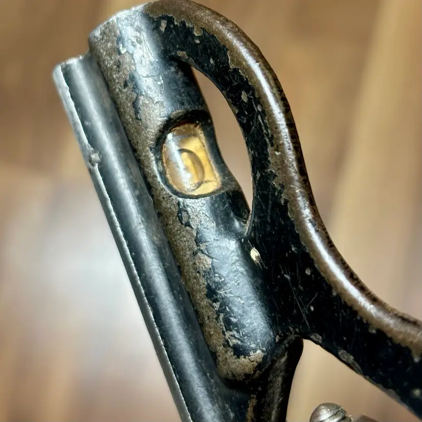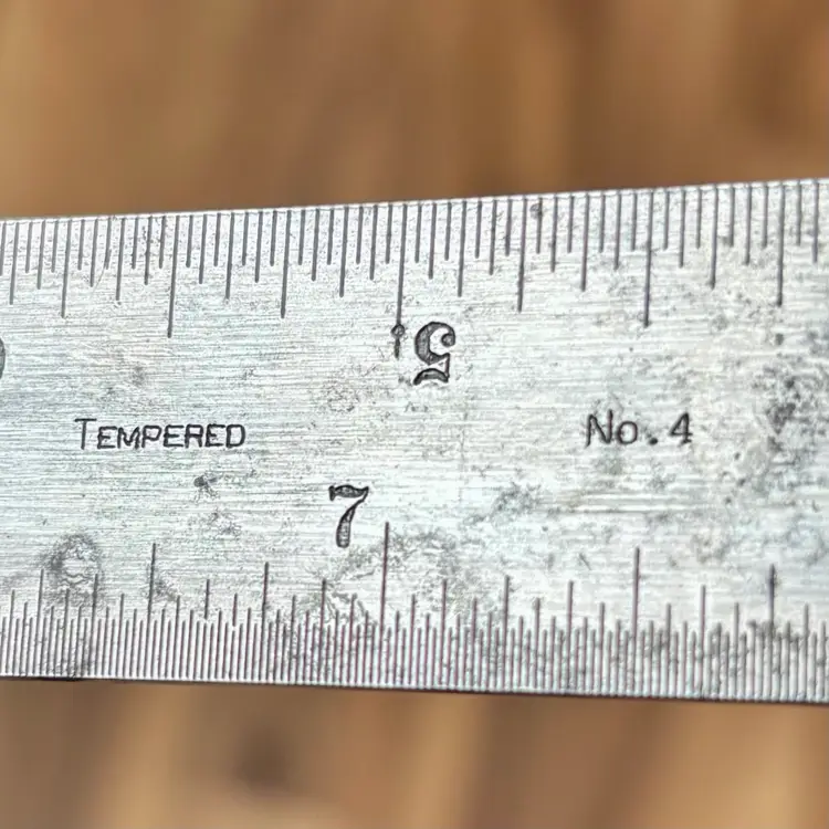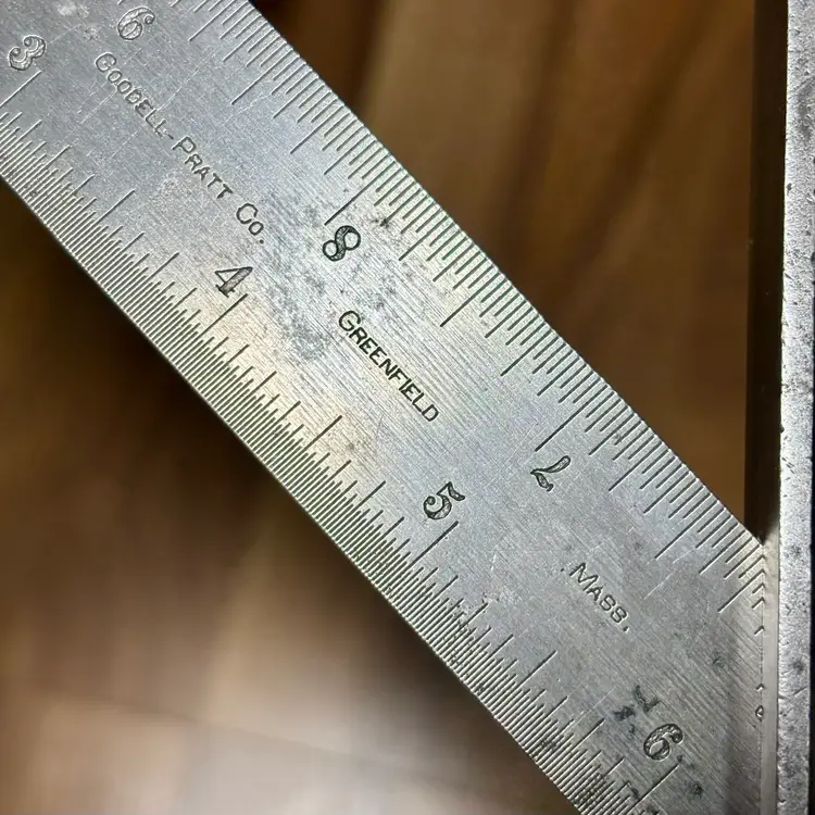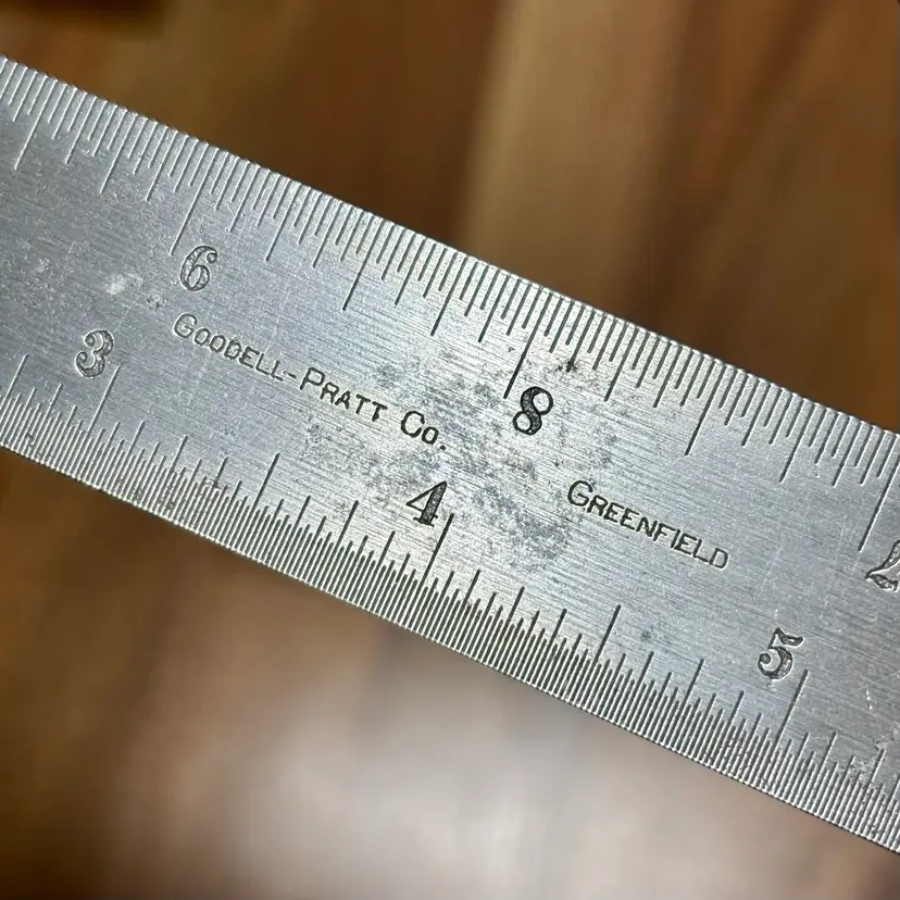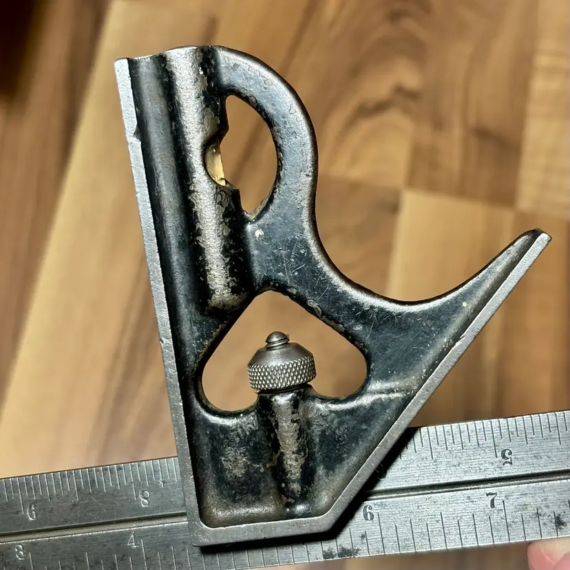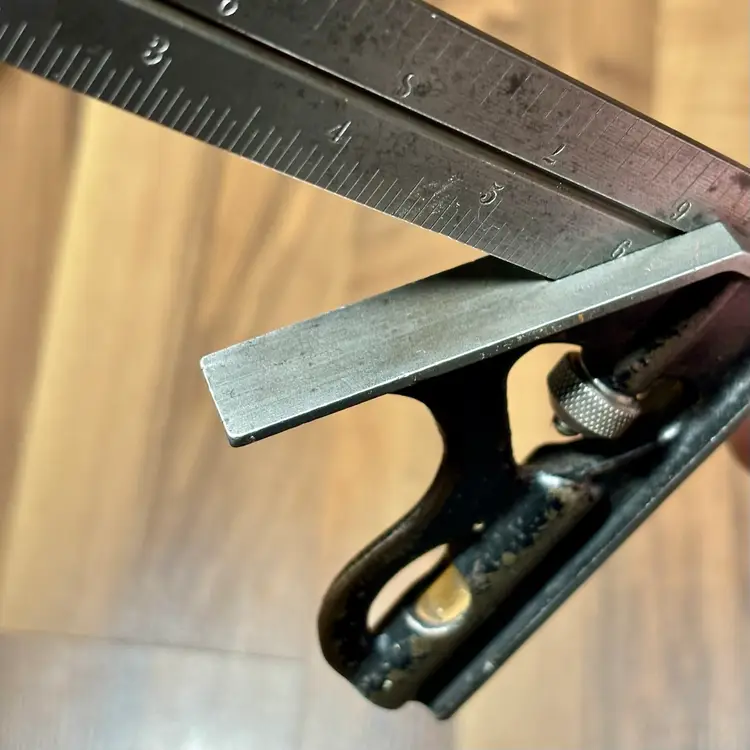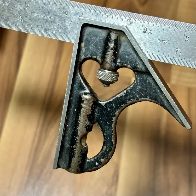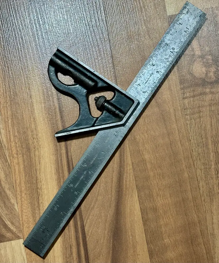 Vintage Goodell-Pratt Co. No. 4 12" Graduated Combination Square. There is some minor pitting on the blade and some finish loss on the head. The head slides smoothly on the blade and locks firmly in place. The level vial is not broken and is easy to read. There is no scribe with this combination square. The blade features 8, 16, 32, and 64th increments.