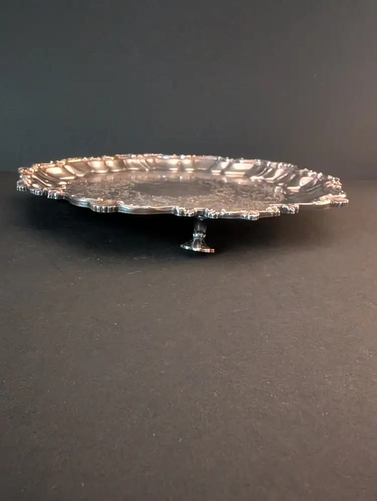 • Elegant round tray • Seashell footed design • Silver-plated finish • Ideal for decor or serving • Perfect gift idea