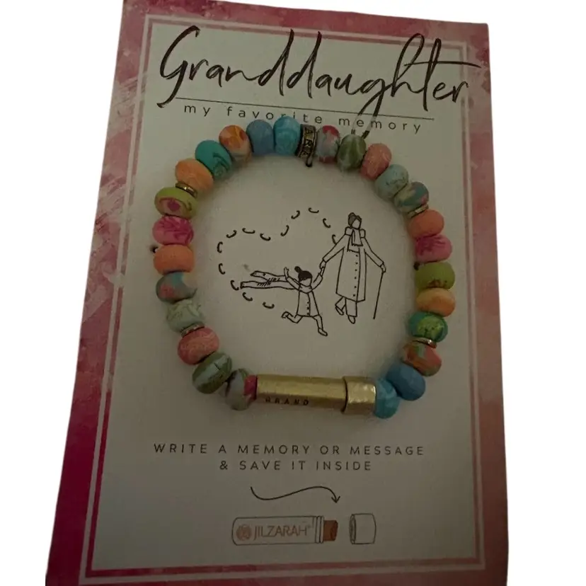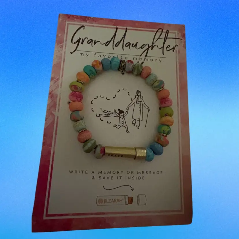 Pastel colors for child Write a note to your granddaughter and save it in this bracelet. Small paper included on back