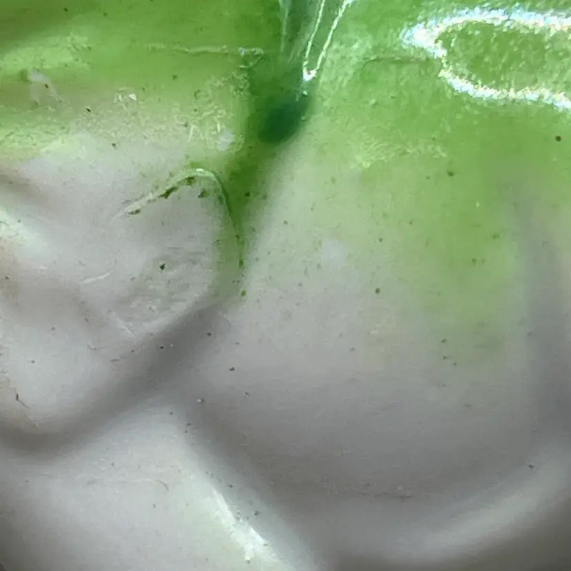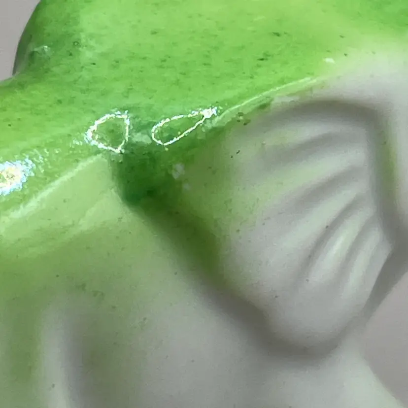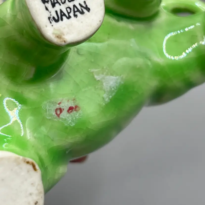 No chips. The larger one has lots of crazing. The smaller one has some mold lines/flaws. Minor color loss.