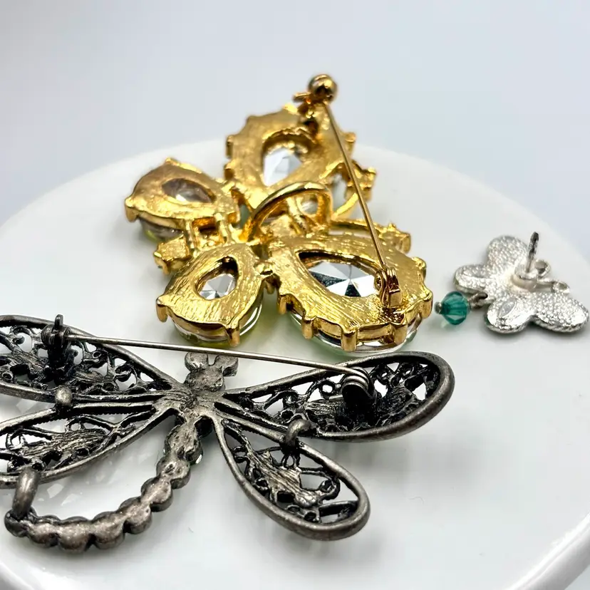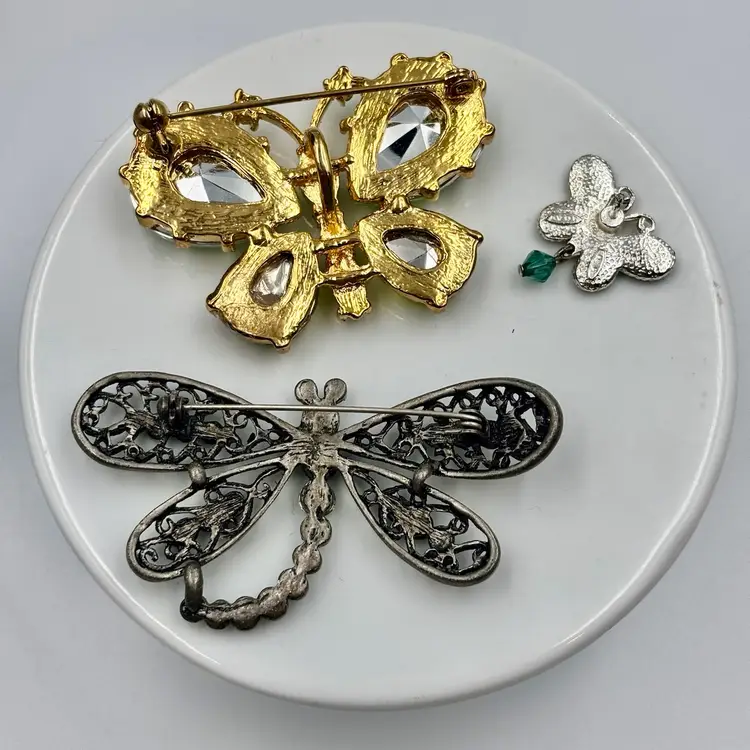 Lager butterfly is also a pendant Smaller butterfly is a pin with missing back