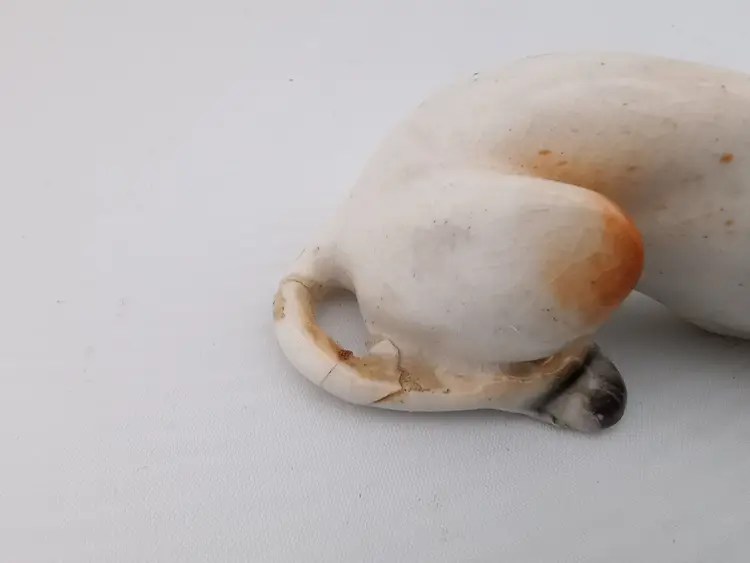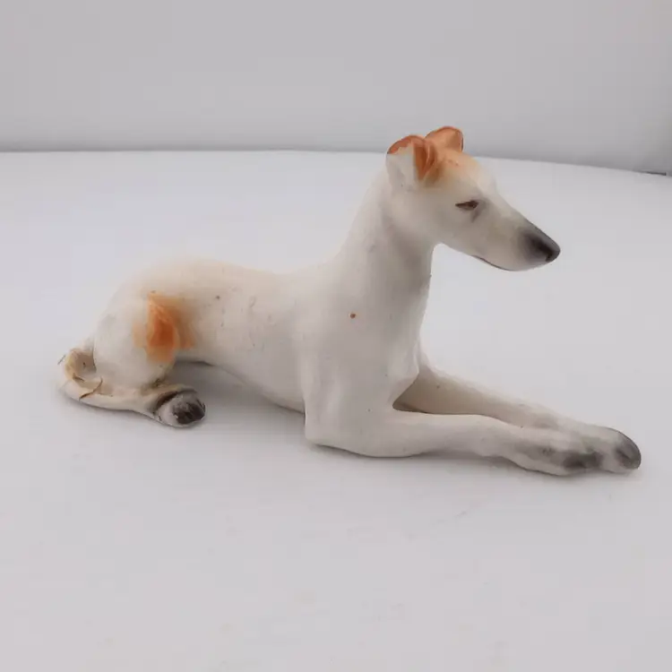 This is a graceful greyhound, likely made in Japan. His tail has significant repairs as shown in the last picture.