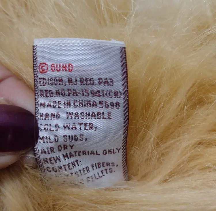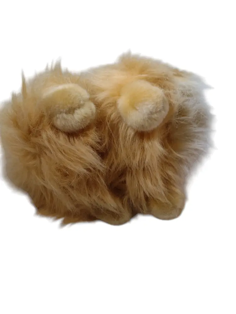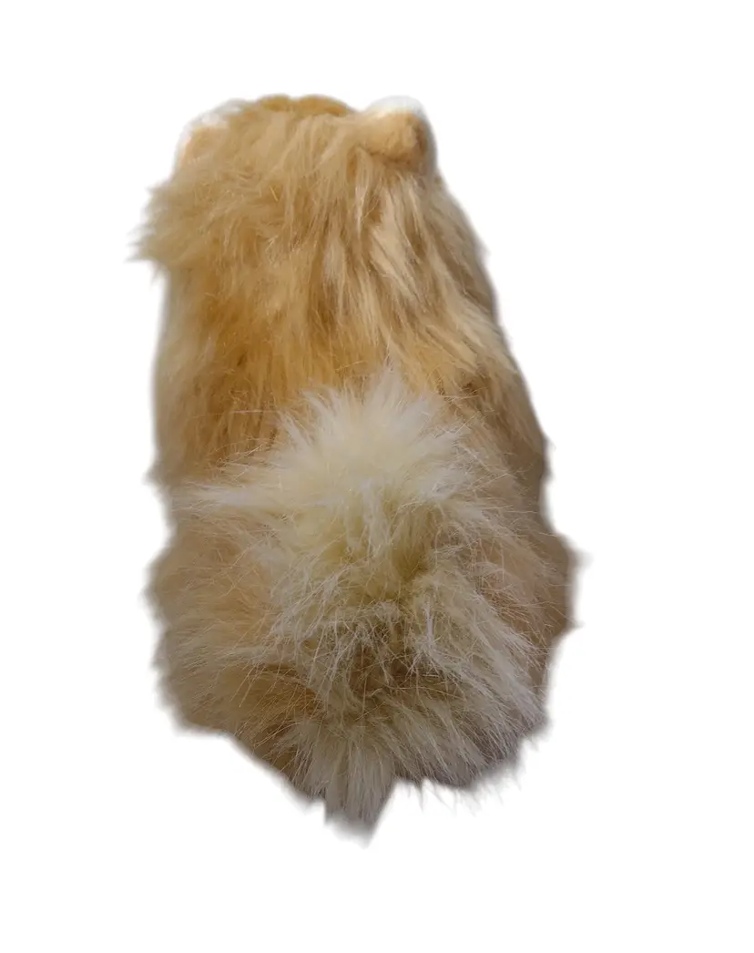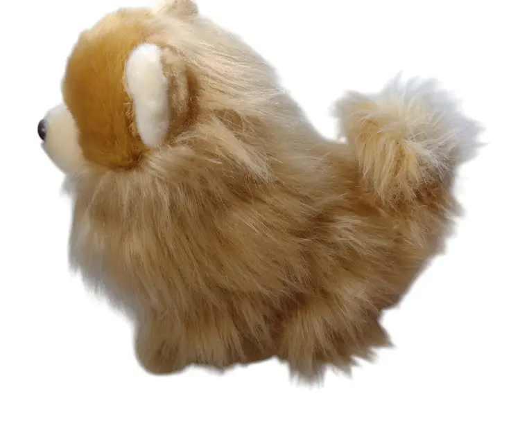 This is a very sweet stuffed plush long-haired Pomeranian dog plush that looks quite realistic. Dog measures 12" long x 9.5" tall x 6" wide.