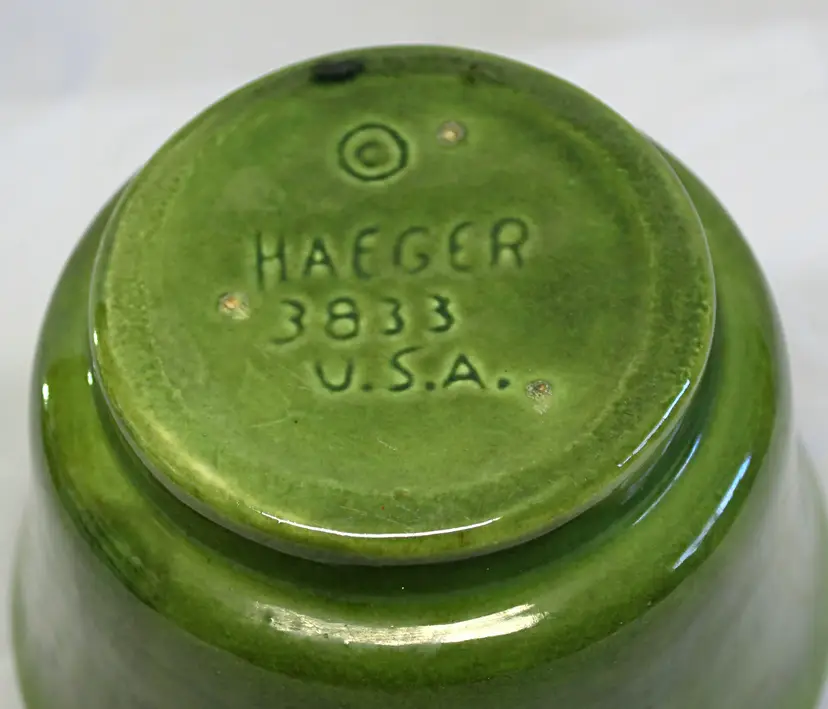 Haeger Green Glazed Art Pottery Planter Pot 3833 U.S.A. Round Small 6"W x 3 3/4" High VTG MCM