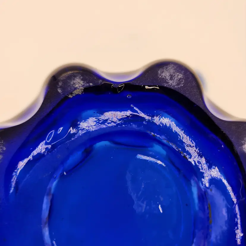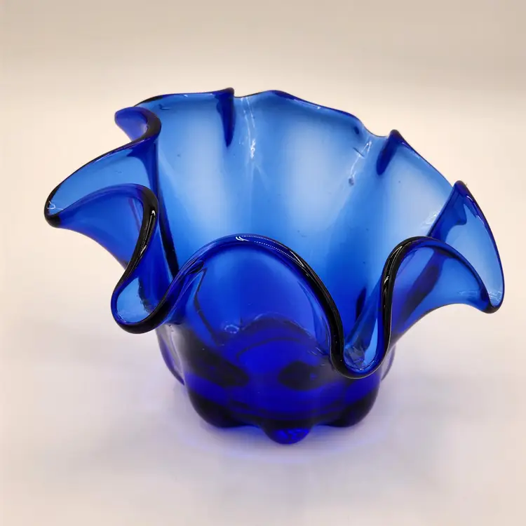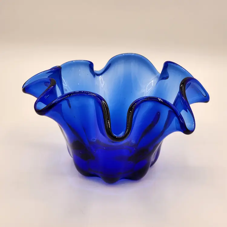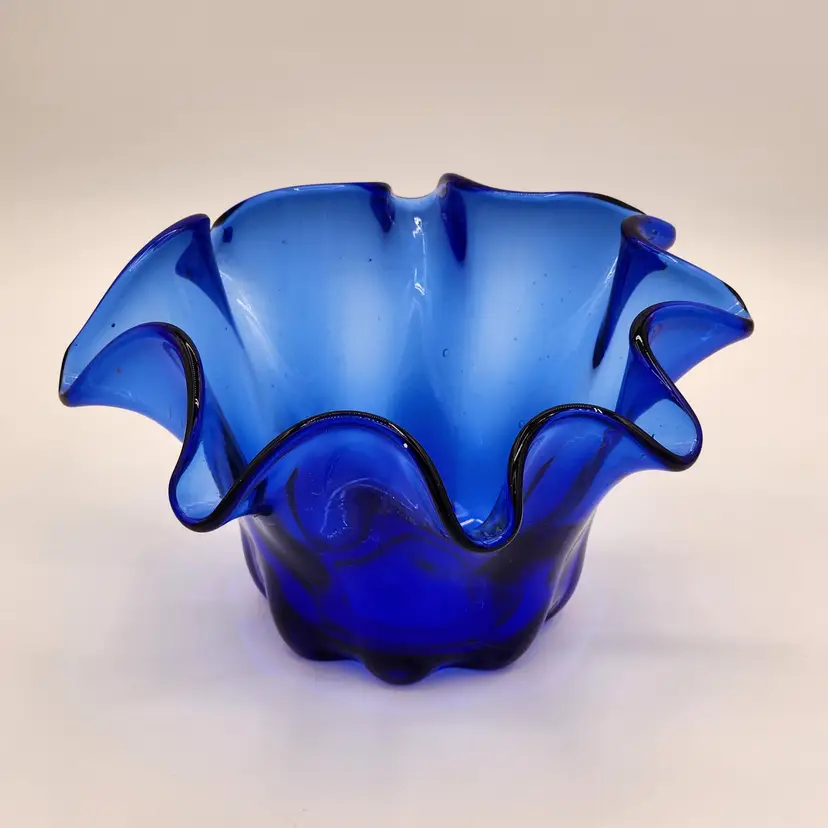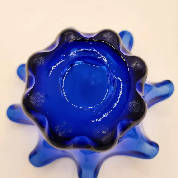 Hand Blown Cobalt Blue Glass Ruffle Top Vase – small flea bite on bottom