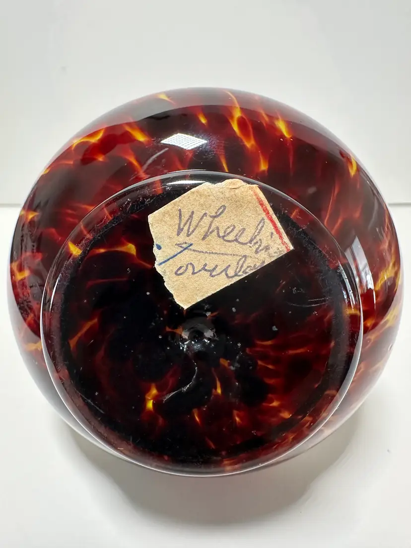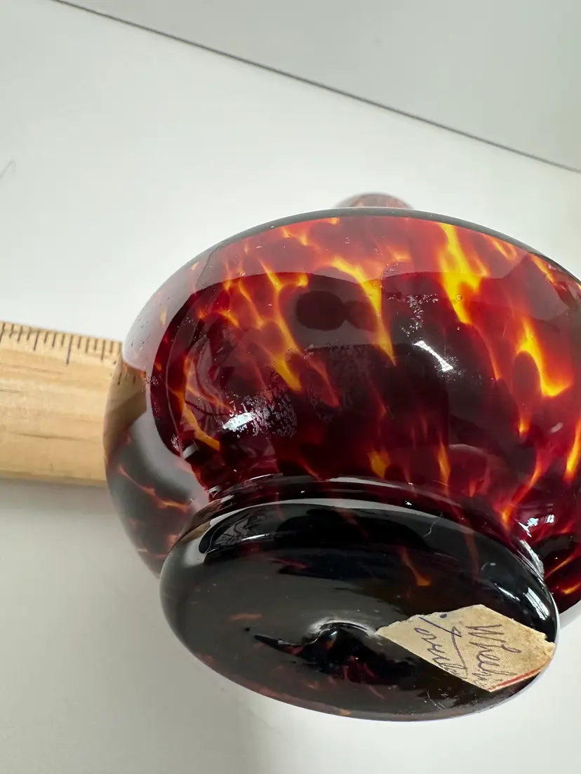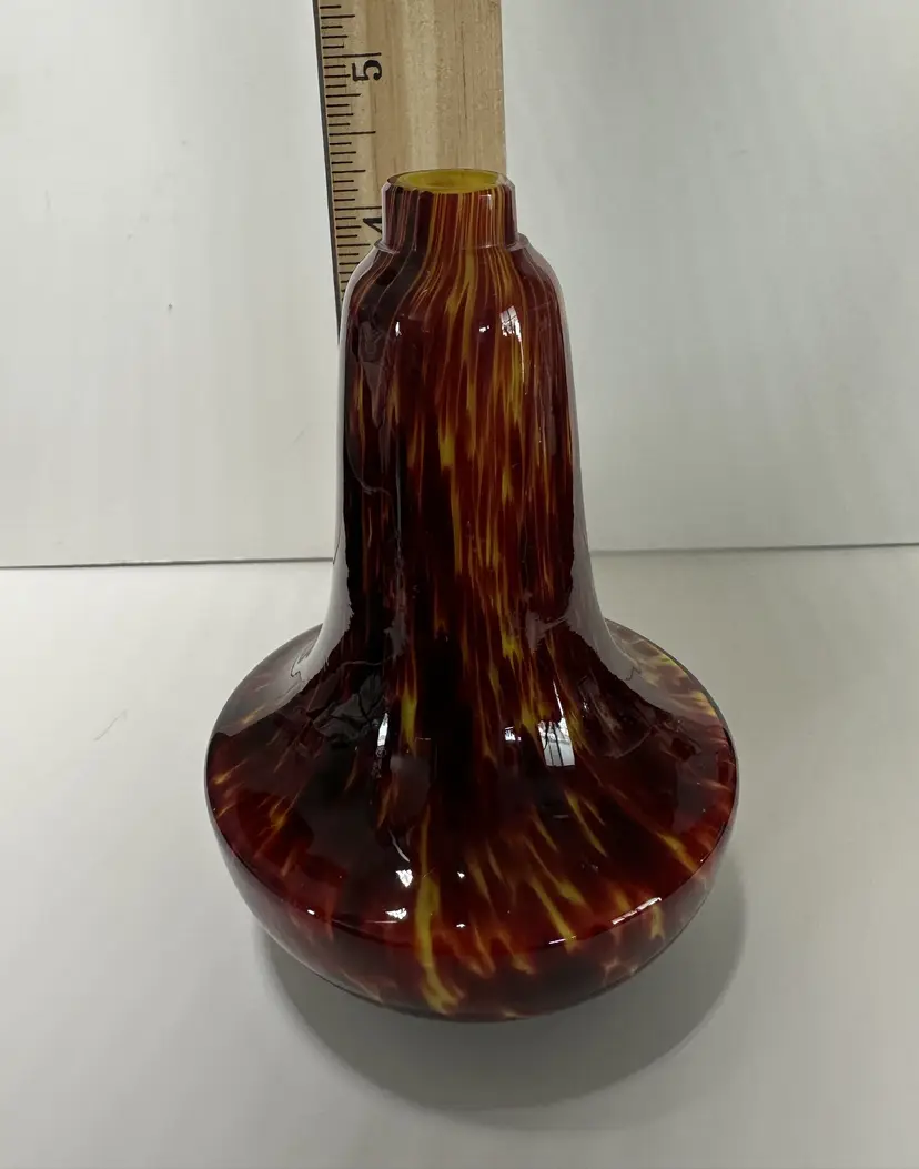 4.5" Tall, tortoiseshell pattern. has small area near bottom that looks like an old sticker may have been there. I cant make out the bottom sticker.