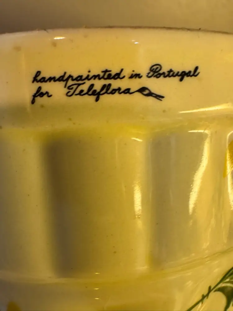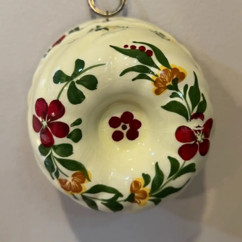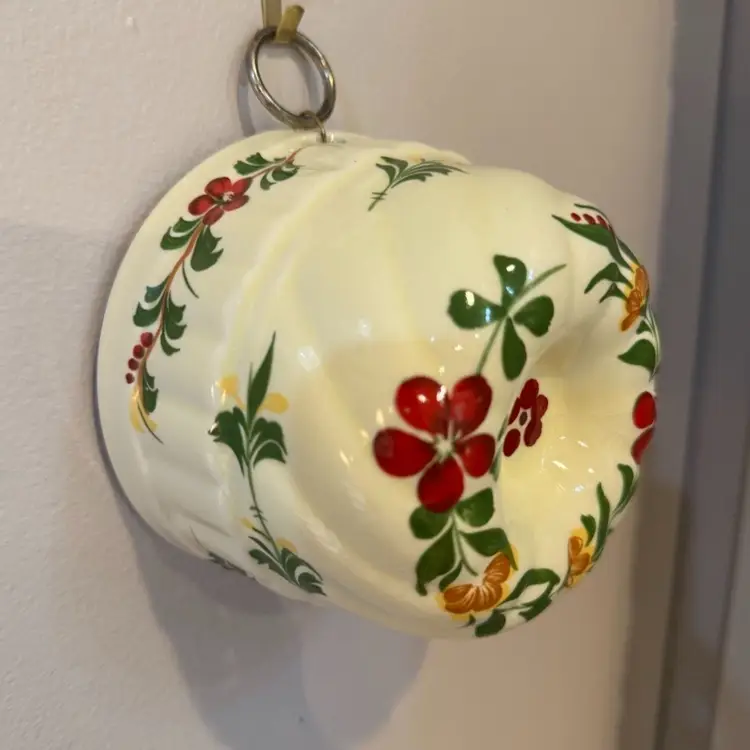 Hand painted for Teleflora vintage kitchen mold or decor. Can be hung. Slight crazing and a tiny bit of paint loss, to be expected with age. Beautiful colors! Measures 3 inches tall and a little over 4 inches across.