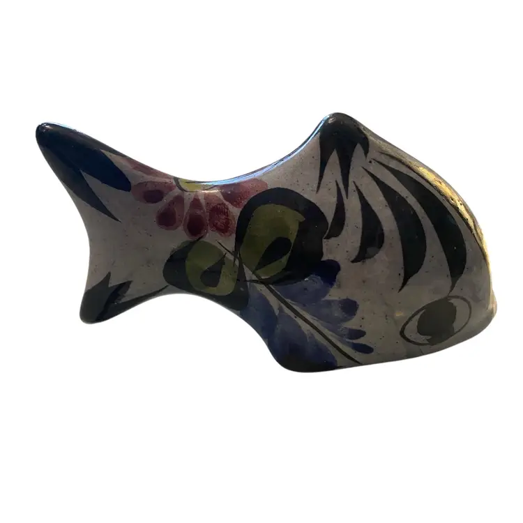 hand-painted Mexican Tonala pottery fish figurine