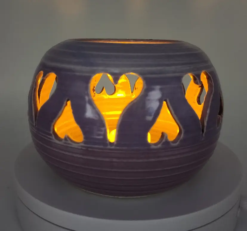 Handmade Signed Ceramic Heart Cutout Lantern Tealight Candle Holder Lilac Rose
