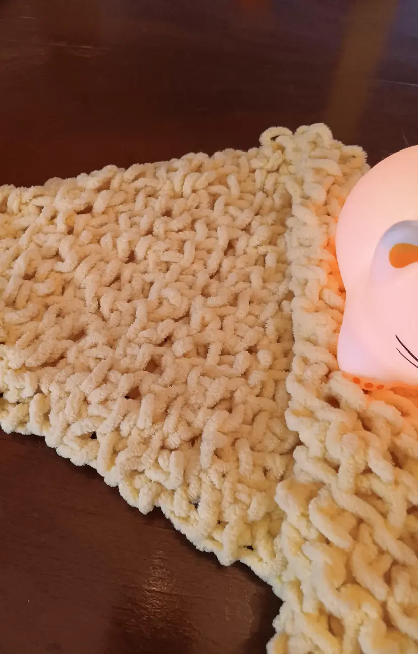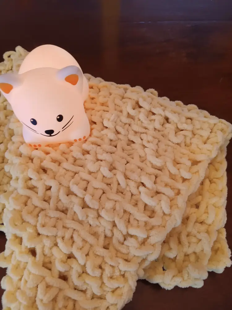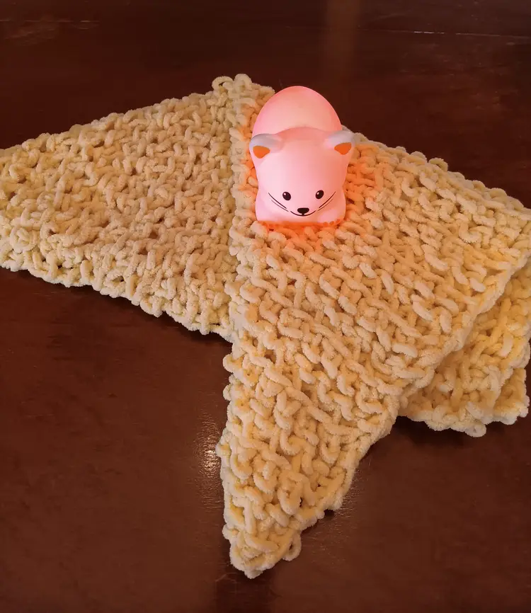 Treat your precious fur baby to their own blanket! Crocheted from chunky yellow yarn, your kitty will love kneading this gift. Measures 24" x 24".