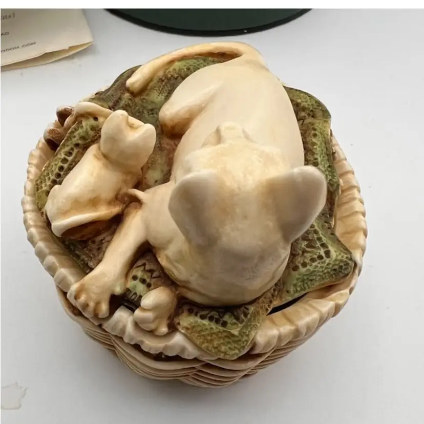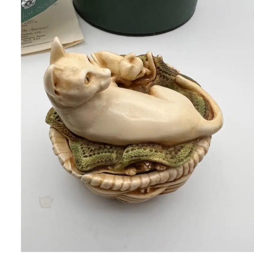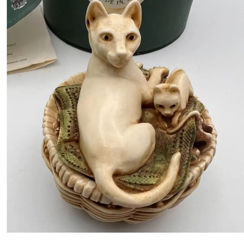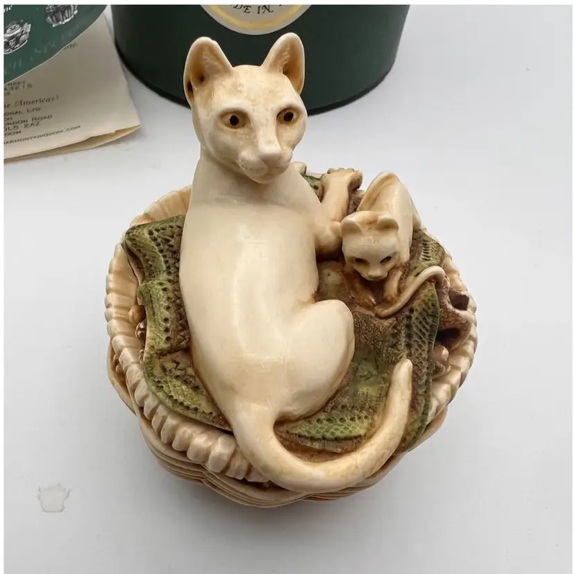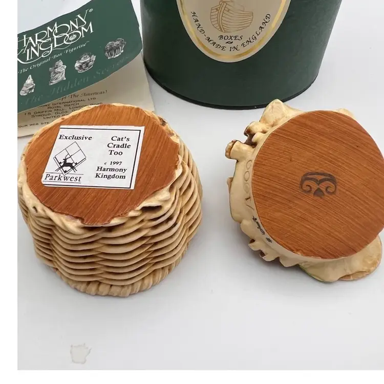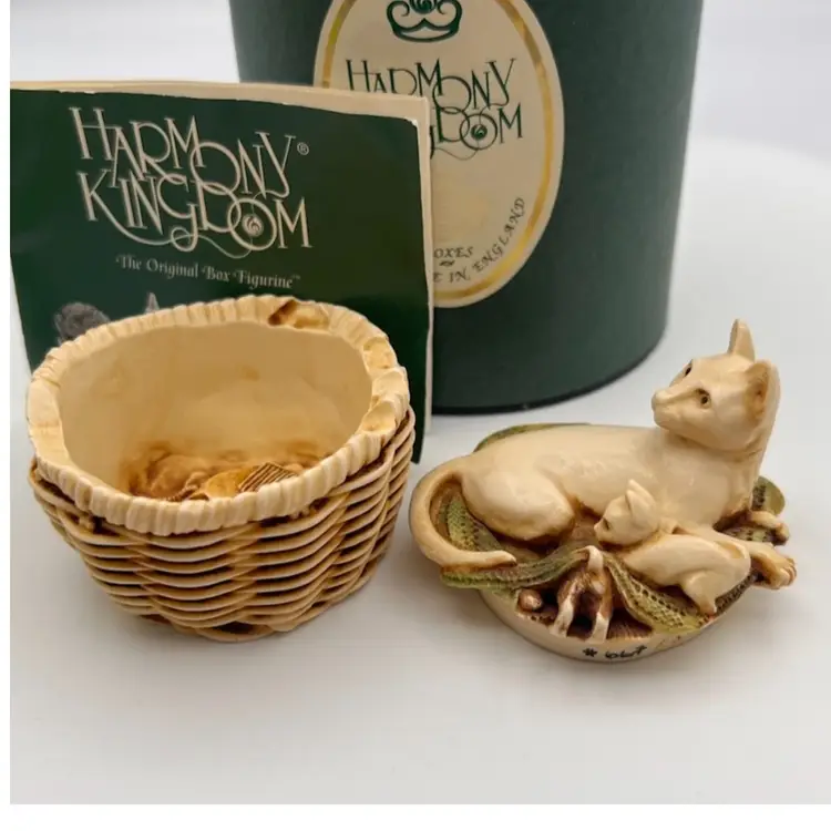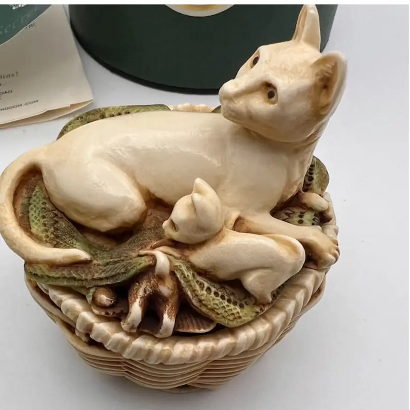 THIS IS A HARMONY KINGDOM CALLED “CATS CRADLE”. NUMBERED 667/1000 CARVED BY DAVID LAWRENCE IN 1996 RELEASED 8/1/1997 AND IS NOW RETIRED BELONGS TO THERE BOUNTIFUL BASKET SERIES, WITH ORIGINAL BOX.