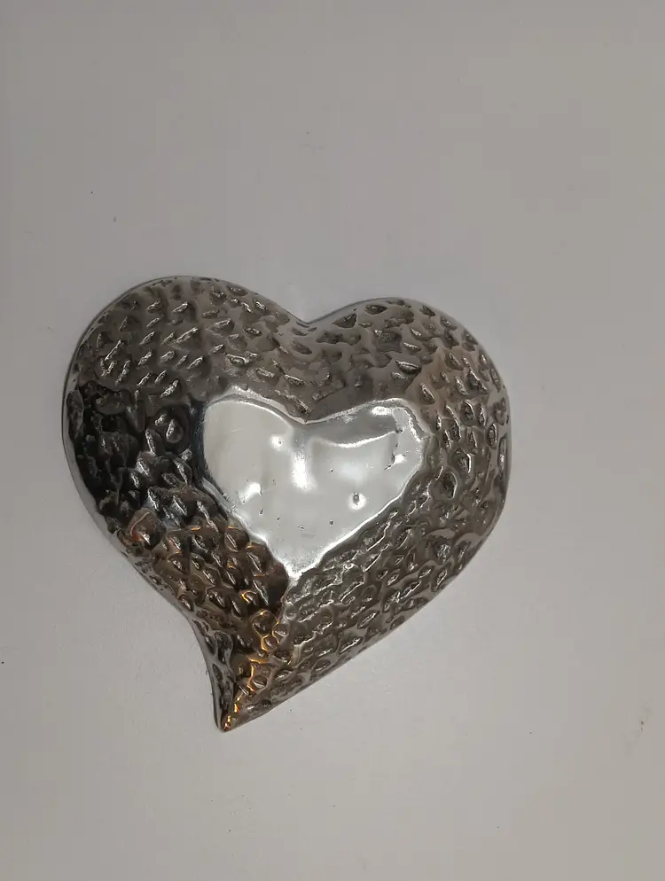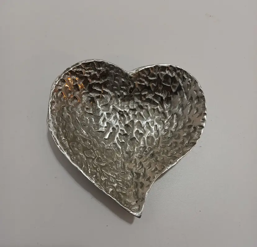 Silver tone Heart Shaped Trinket Dish by Design Ideas; Textured Finished Metal; 4" L x 4.25" W x 1" T; Very Nice Condition; No Scratches or Dents