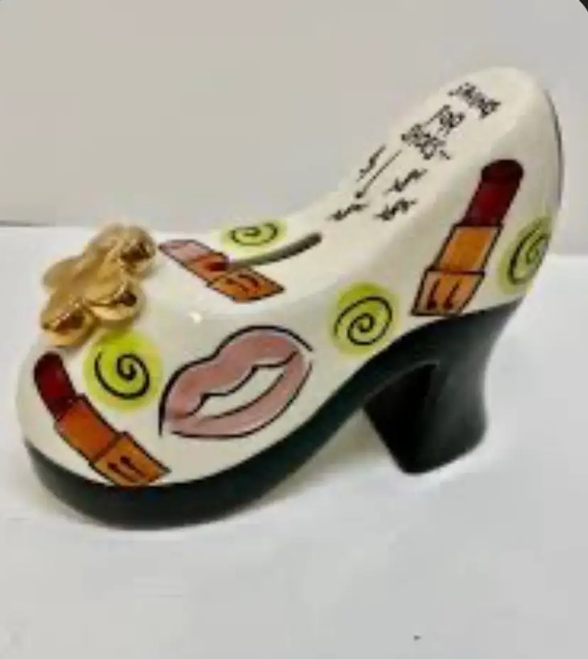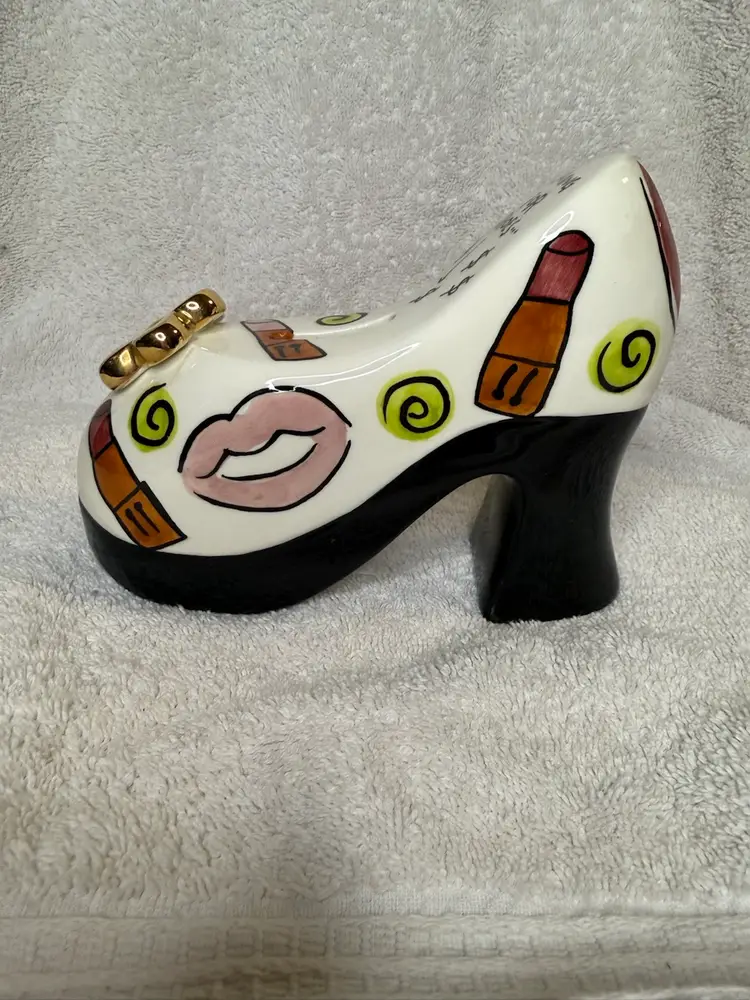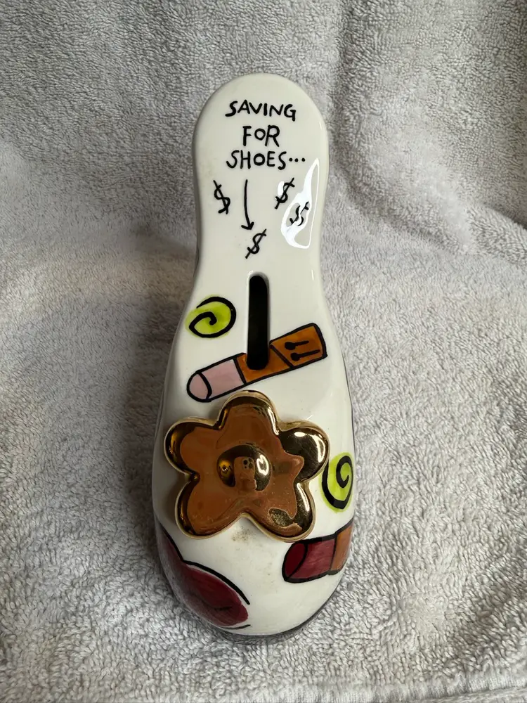 Cute “Saving for shoes” high heel shoe bank. 7” x 5”. No chips or cracks.