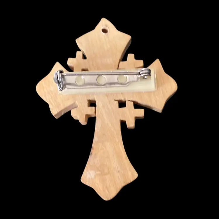 Holy Land Olive Wood Jerusalem Cross Brooch(2 1/4" tall) Handmade