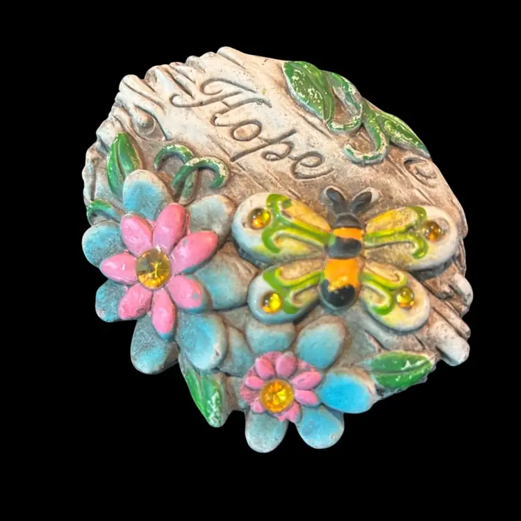 Hope Decorative Garden Stone - Butterfly & Flowers