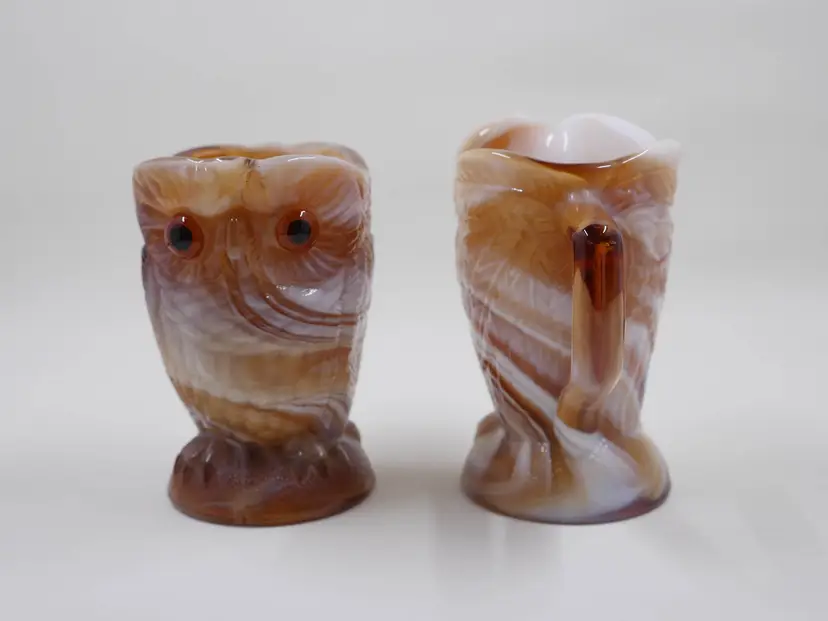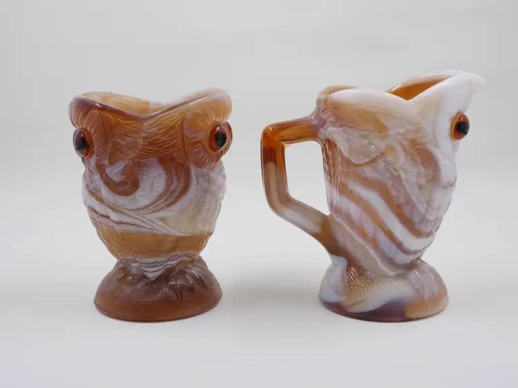 Imperial Glass Slag Glass Owl Creamer and Sugar Bowl