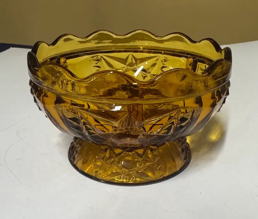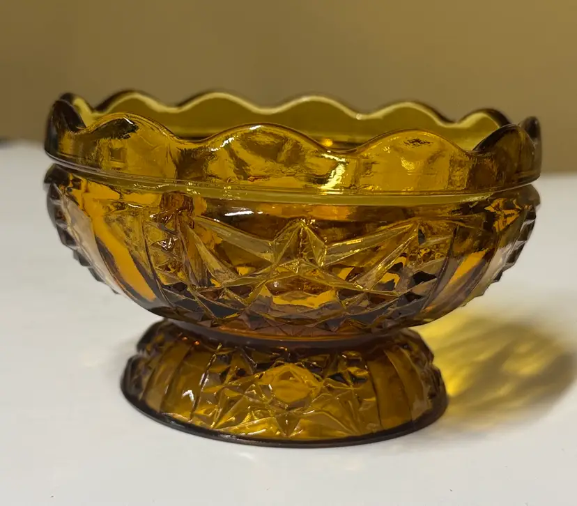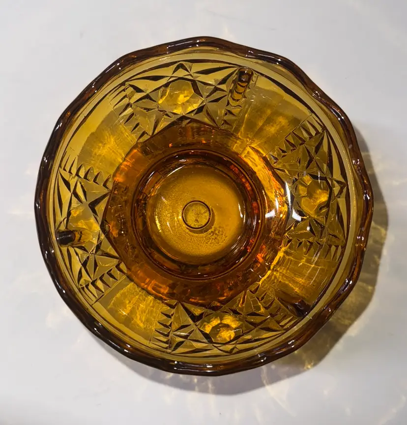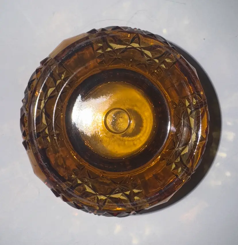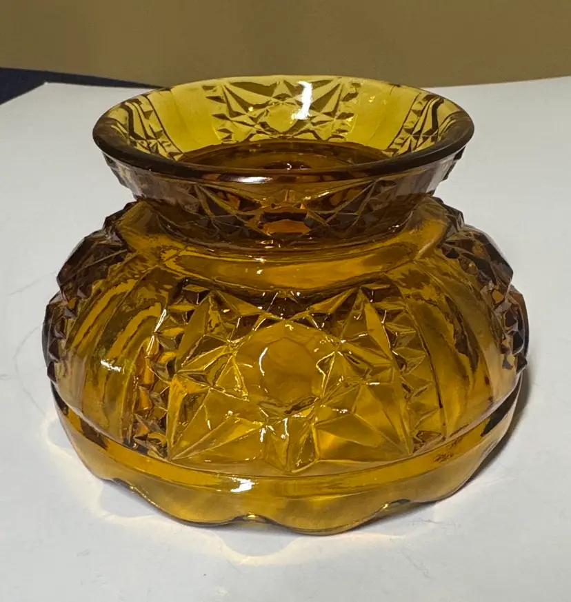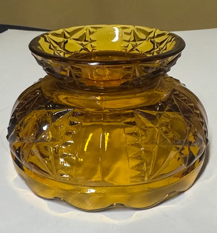 Indiana Glass Stars and Bars Amber Fairy Lamp Light BOTTOM ONLY. Elegant amber glass with intricate patterns. Perfect for decor. 3” tall 4.5” diameter Excellent condition with no breaks or chips (95124263)