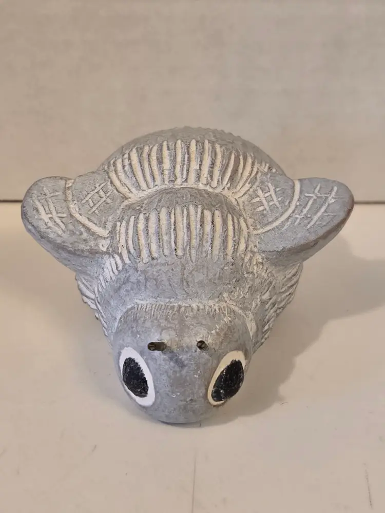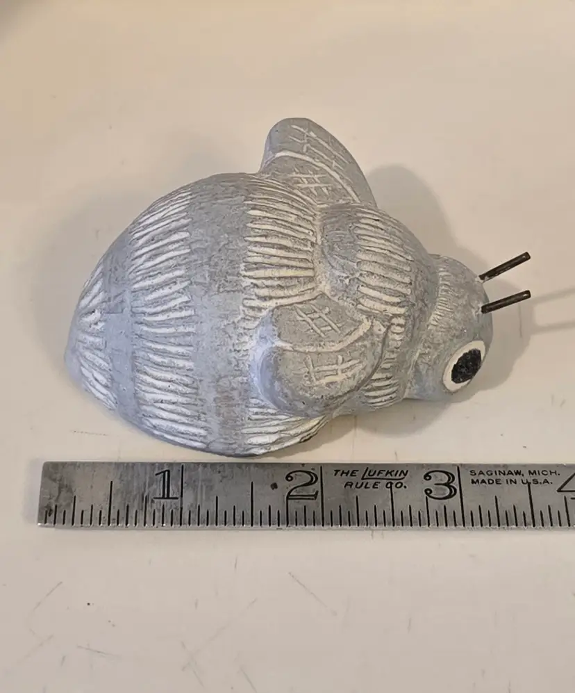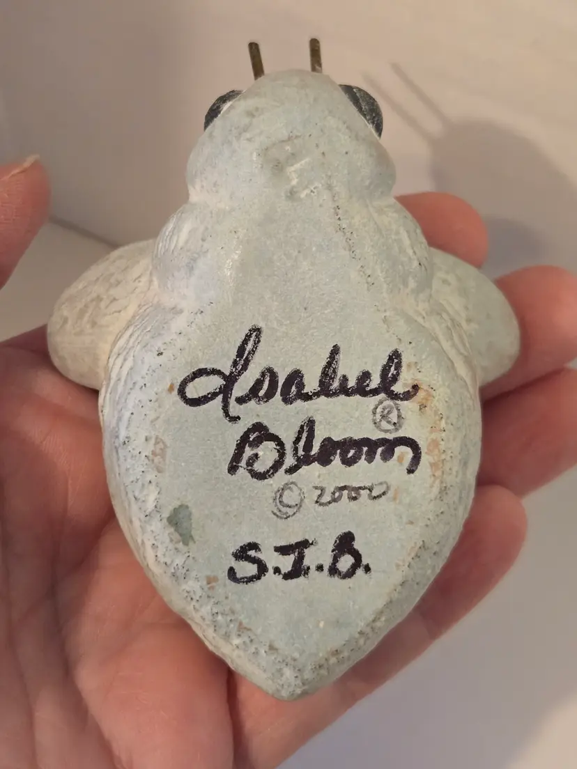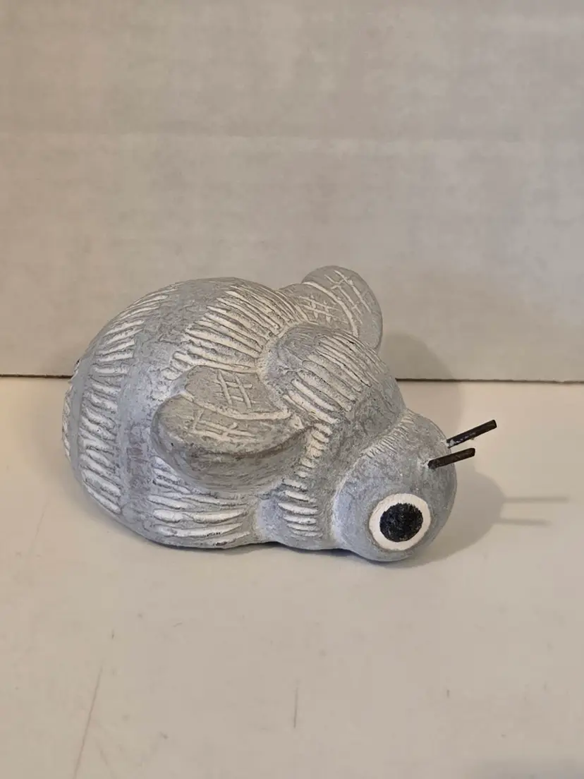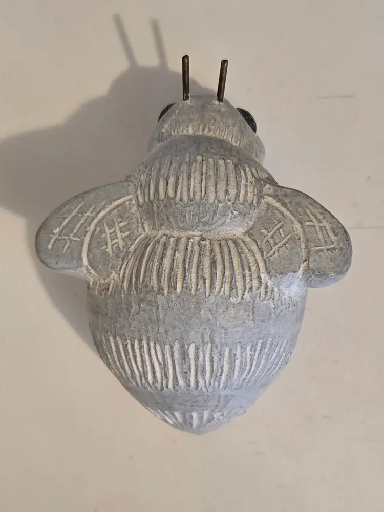This adorable cast concrete bumblebee sculpture from Isabel Bloom measures approximately 3.5×2.8 inches. It is signed and dated on the bottom.
