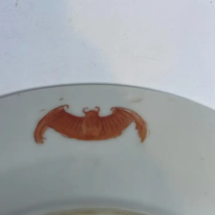Got this vintage porcelain plate with a dragon and phoenix design. It has that classic greek key border in different colors. It's a nice little decorative piece for a shelf or to add to a collection. No major chips that I can see but it's definitely got some age to it. Pretty cool looking if you like oriental style decor.