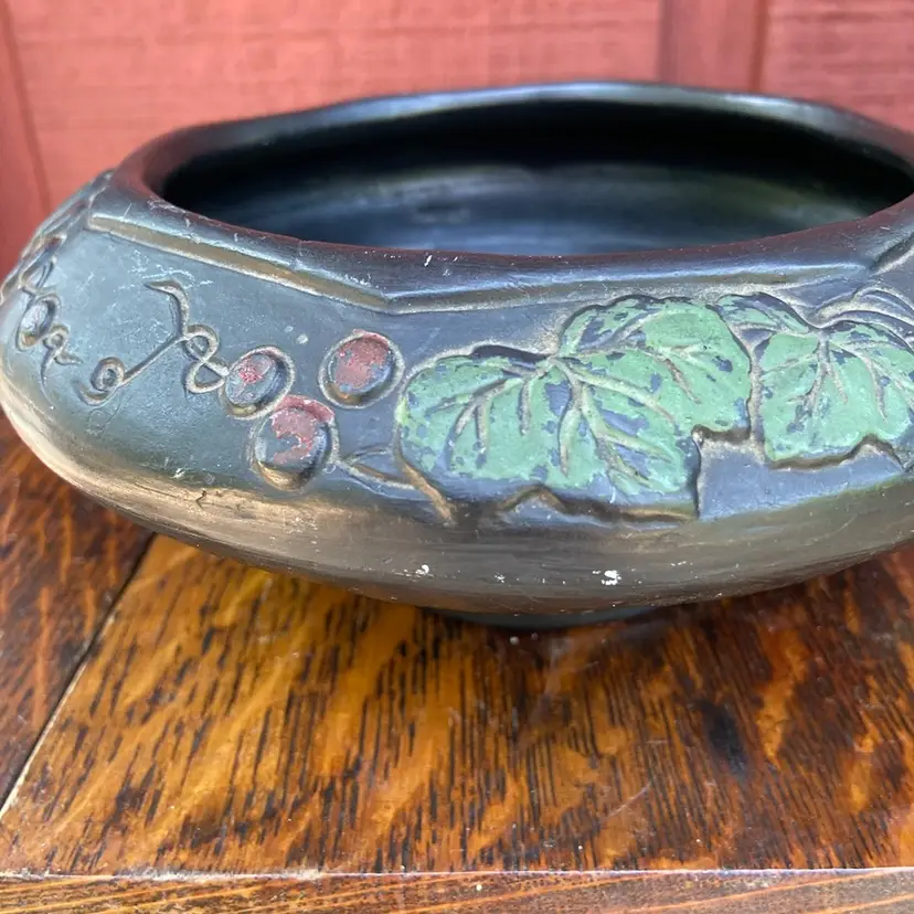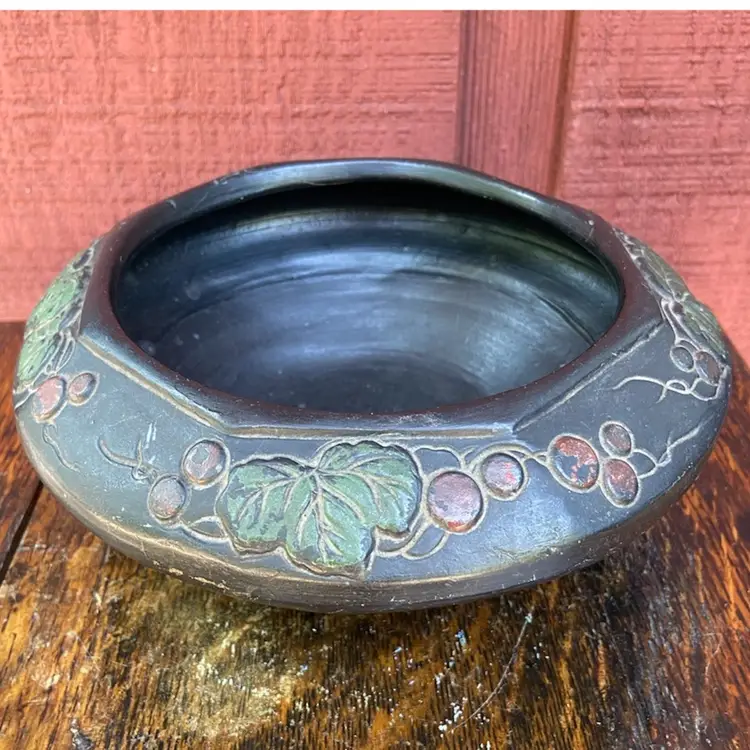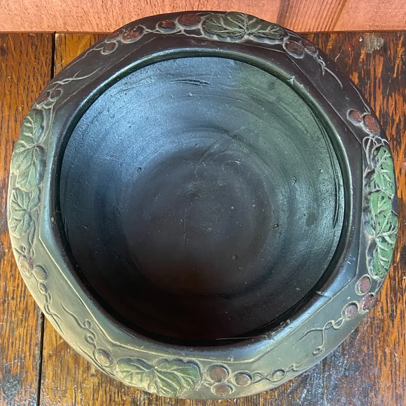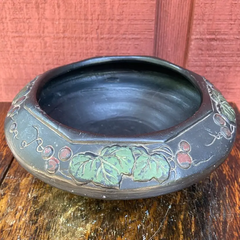 Japanese Pottery Bowl With Berries And Leaves Motif. 7”w x 2.75”h. Made In Japan.
