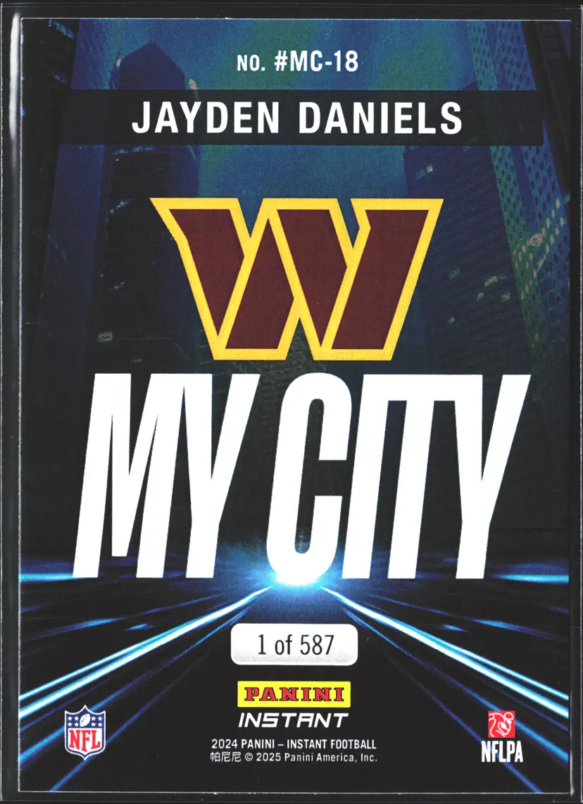 Use code DISTRICT5 at checkout to get $5 Off your 1st purchase! Grab this Panini Instant My City rookie card featuring Jayden Daniels of the Washington Commanders. A perfect addition for any football card collector! US Shipping: $1.25 PWE for 1st item; $.25 for each additional item added to order CA Shipping: $1.95 flat rate PWE, $.50 each additional item added to order