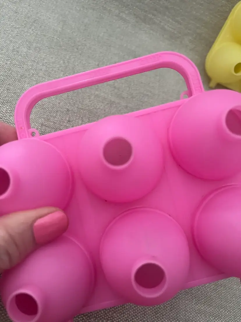 The Jell-O Jello Jigglers Easter Egg Gelatin Shooter Mold in yellow and pink are fun and festive perfect for creating Jello Easter gigglers or Wedding / Bachelorette or Bachelor Parties adult shots in the shape of Easter eggs. These reusable plastic mold features 6 holes for creating individual jello shots, making it ideal for celebrating special occasions. With an item height of approximately 3" and a width of approximately 6" each, these molds are both refrigerator safe and made in the United States by the well-known brand JELL-O. Perfect for adding a touch of Easter spirit to your next gathering or party.