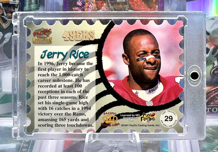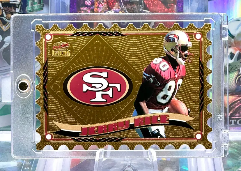 Jerry Rice 1997 Pacific Revolution AIR MAIL Gold Die Cut SSP Short Print Insert Parallel San Francisco 49ers Niners WR Wide Receiver Offense Offensive HOF Hall of Fame Player Rare NFL Football Card