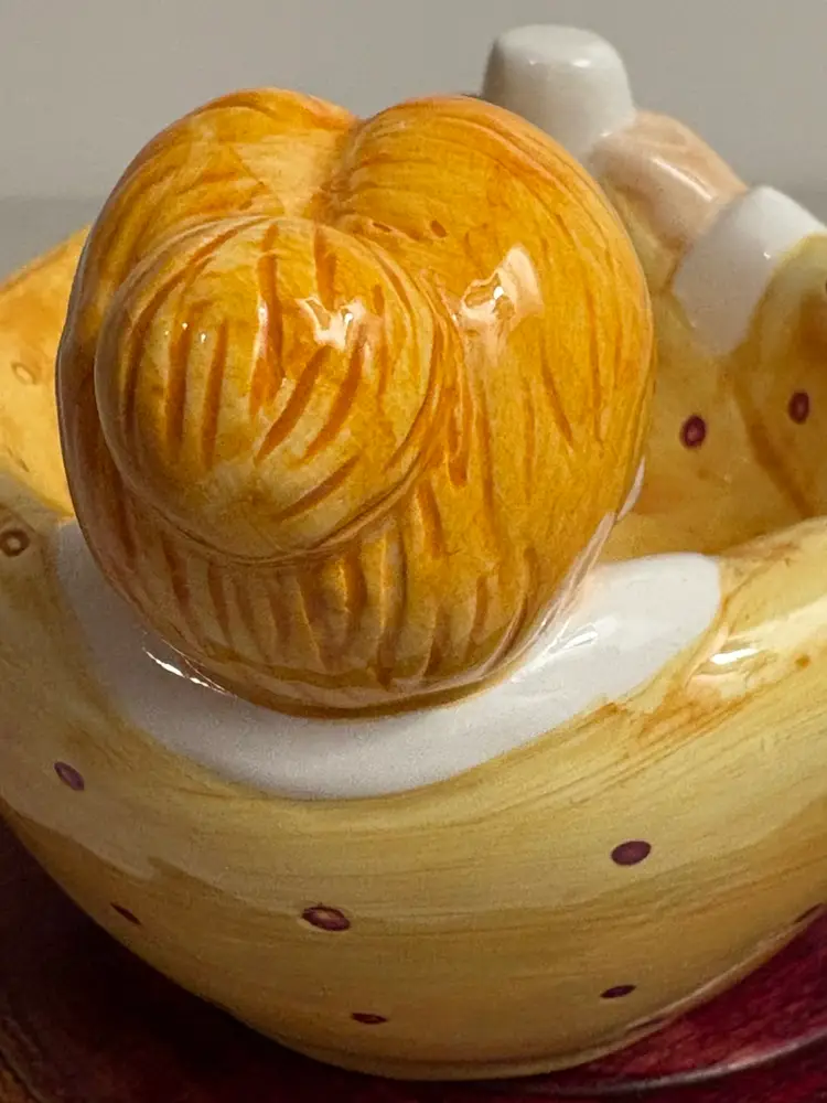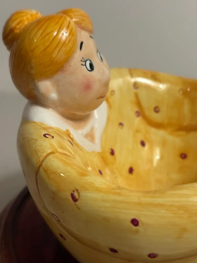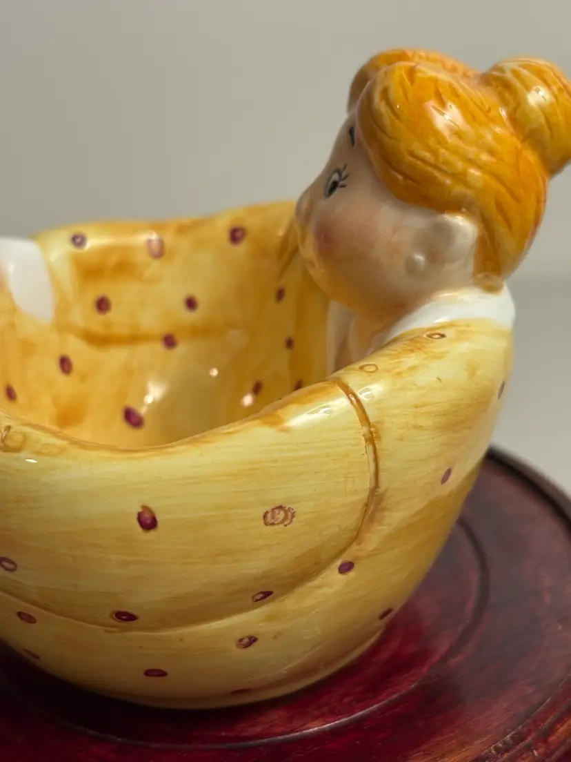 This 4" replacement ceramic bowl for a Jewish Passover Seder plate features a lotus design from 1999. It is a collectible item that would be used in a traditional Passover Seder ceremony, showcasing elements of Jewish religion and spirituality. The unmodified bowl is a meaningful piece for those who appreciate religious artifacts and are looking to complete their Seder plate set.