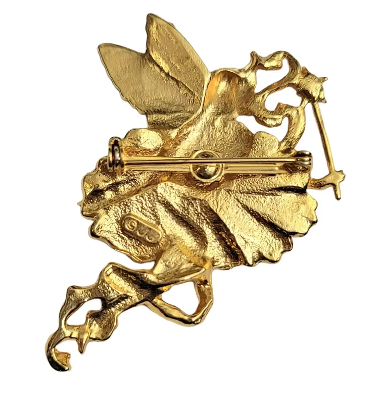 JJ Jonette Jewelry Co. Gold Tone Winged Ballerina Fairy Brooch, Signed
