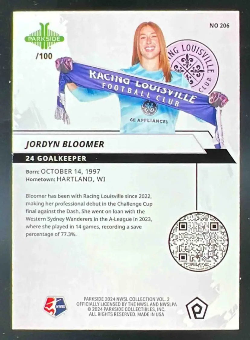 Jordyn Bloomer 2024 Parkside NWSL Collection Shimmer /100 Soccer Card