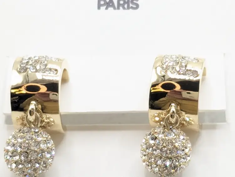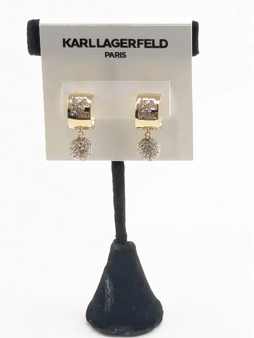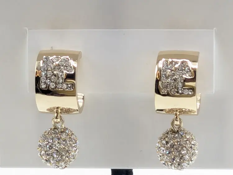 Karl Lagerfeld Paris Gold Tone Crystal Ball Drop Pierced Earrings