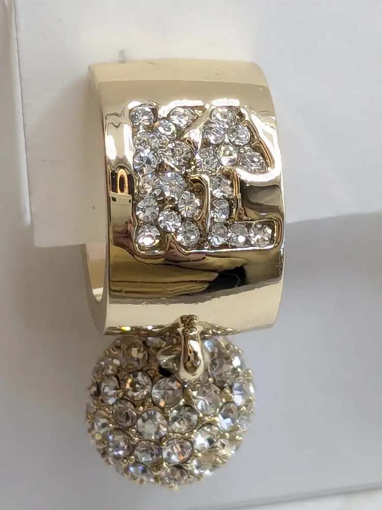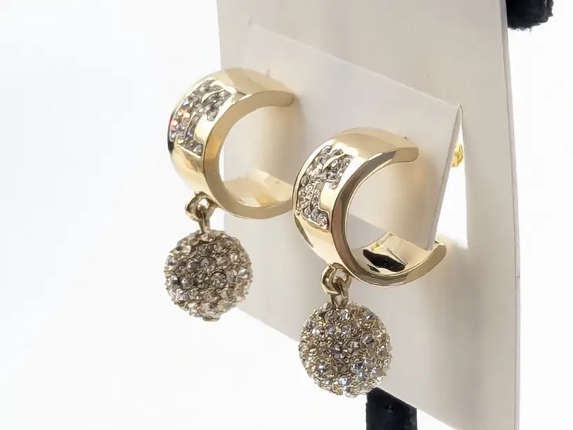 Good condition. Elegant gold tone earrings featuring sparkling crystal drops. Perfect for adding a touch of glamour to any outfit. Measures 1" in length and 3/8" wide. wen