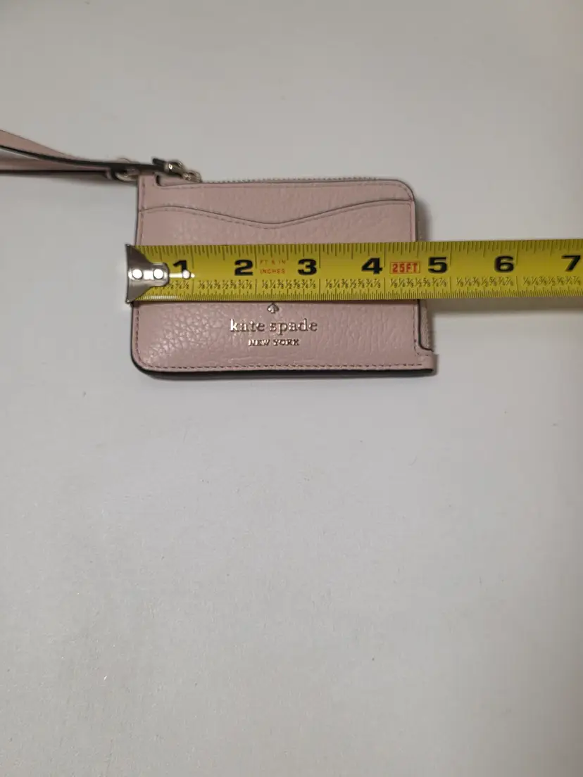 The Kate Spade Wristlet in pink pebbled leather is a stylish and practical accessory for women. This mini card wallet features multiple credit card slots, a secure zipper closure, and a convenient wristlet strap for easy carrying. Made from high-quality leather, this wristlet is perfect for keeping your essentials organized while on the go. The pebbled texture and vibrant pink color add a touch of sophistication to any outfit.