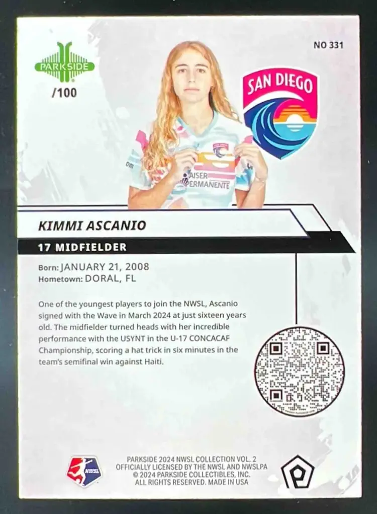 Kimmi Ascanio 2024 Parkside NWSL Collection Shimmer /100 Wave Soccer Card