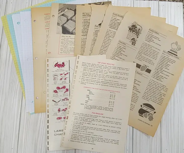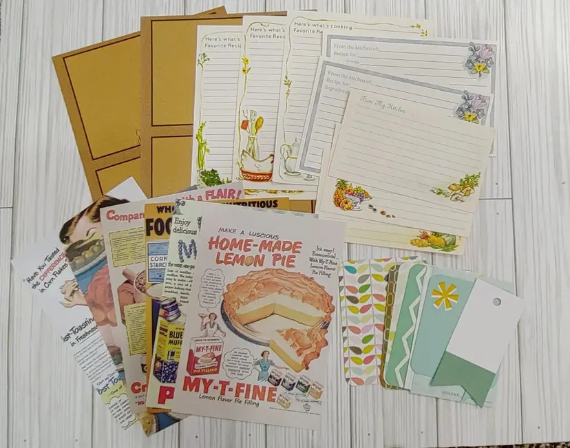 This kitchen collection was put together using many vintage cook books, recipe cards and magazines. I have also included some stamped images that can be painted or colored with markers to match your journal. It contains over 80+ items from the 1950's through the current 2020's.