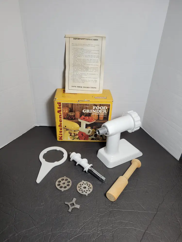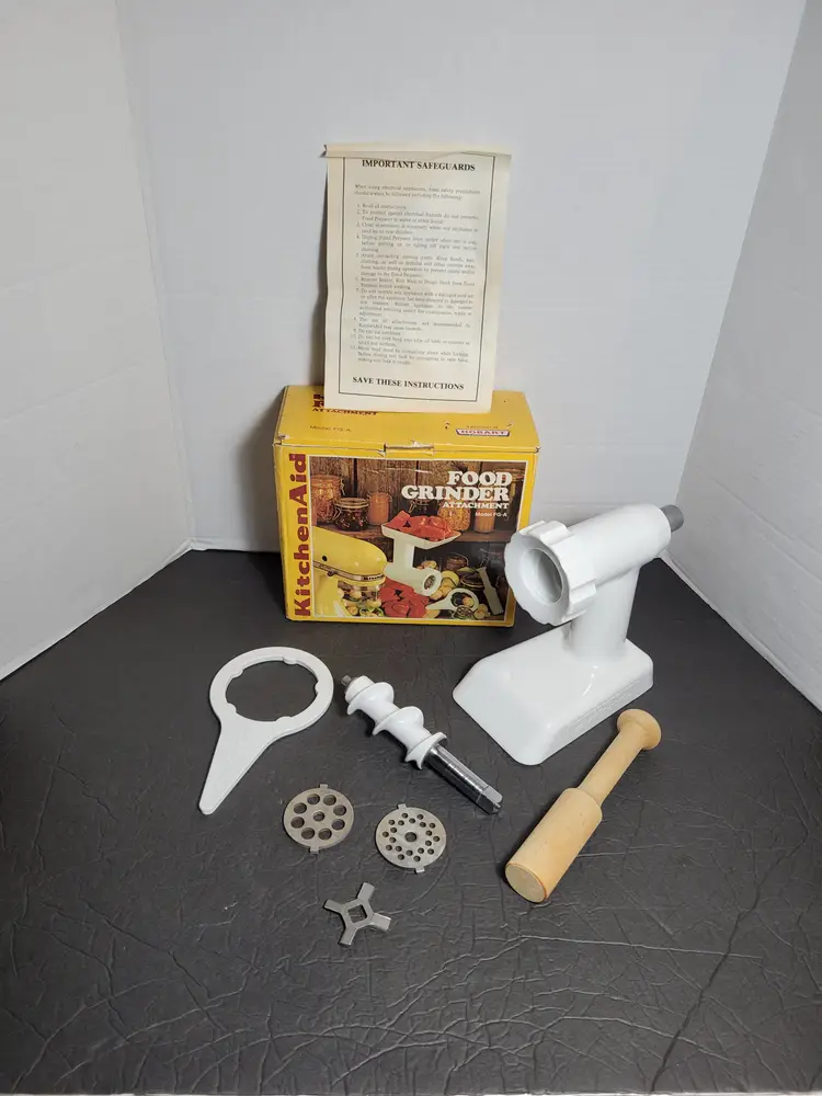 KitchenAid Food Grinder Stand Mixer Attachment Model FGA Pre owned some wear from normal use Small stretch crack but fully functional See ALL photos for best description Contact me with any questions Ships fast