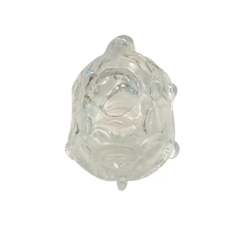 Adorable clear turtle shaped fairy lamp. Has a small flea bite/ chip just to the left side of body below neck. Otherwise in perfect condition. Can be used with shell on or off. Use battery operated tea lights so the glass doesn’t crack.