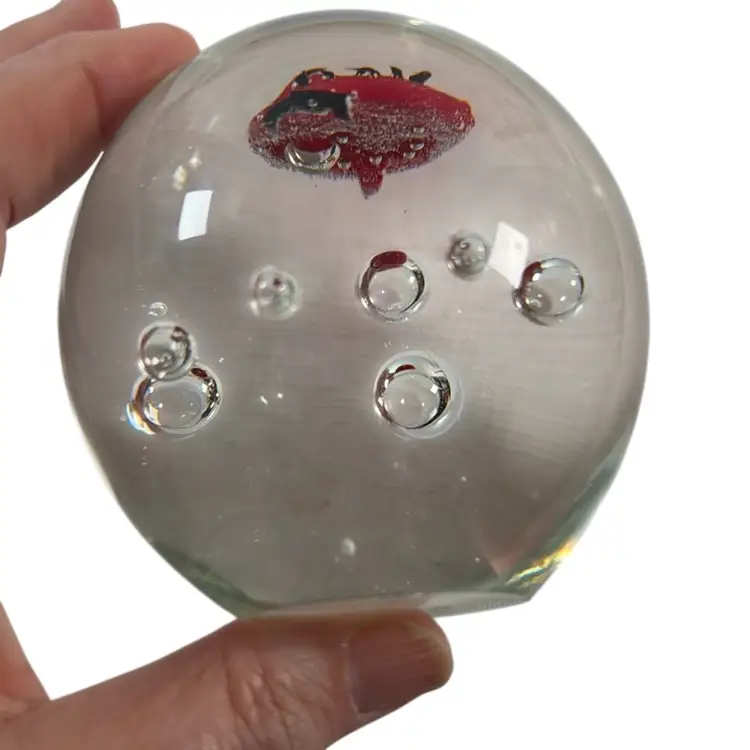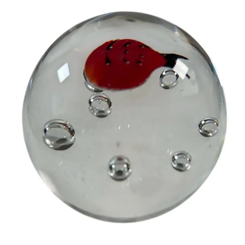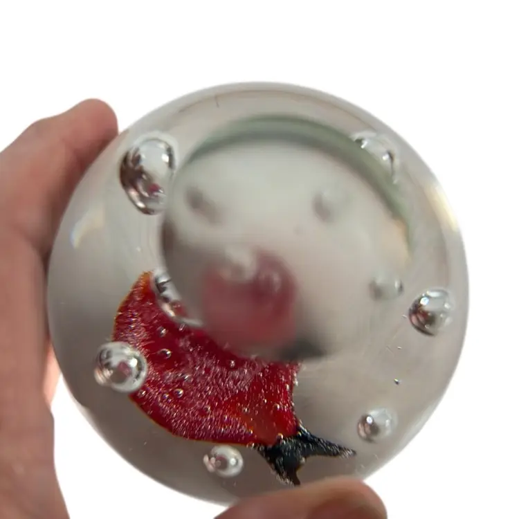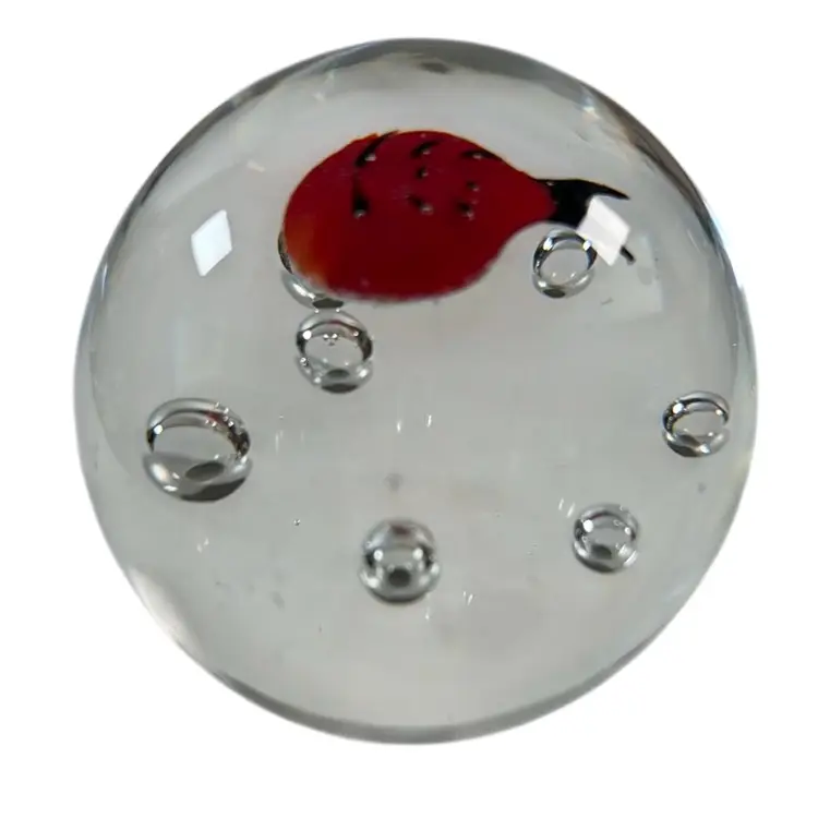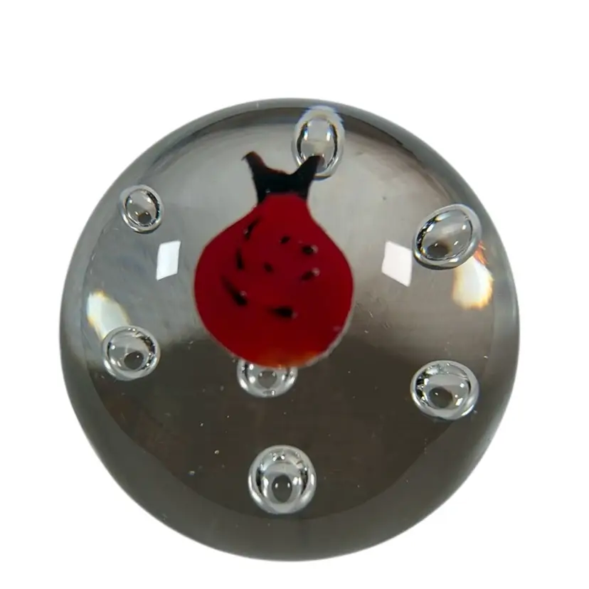 Lady Bug 3” Glass Paperweight with Controlled Bubbles