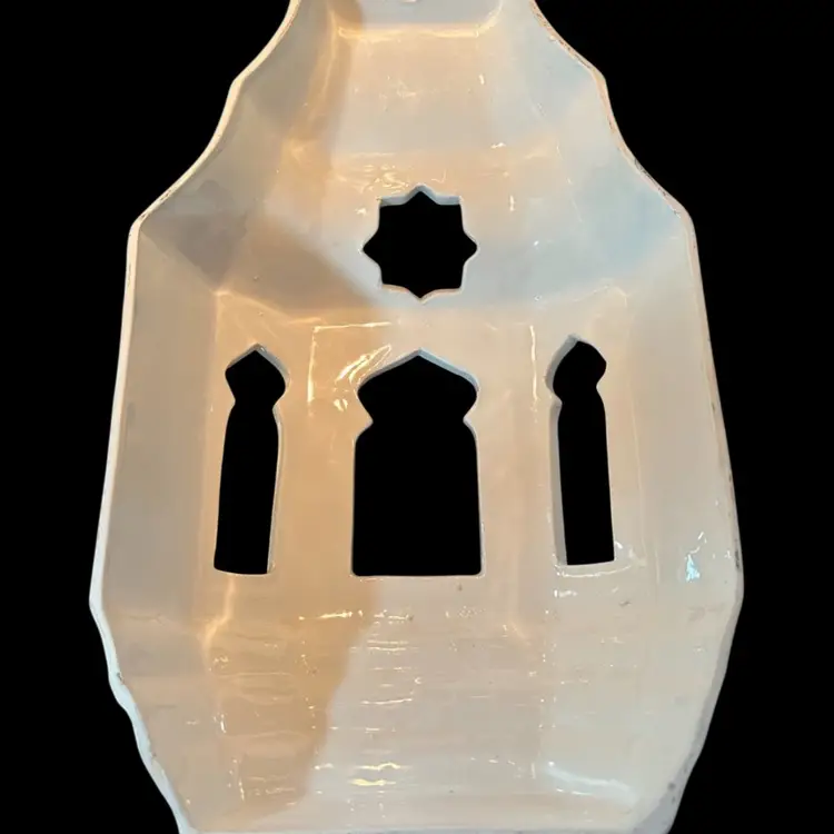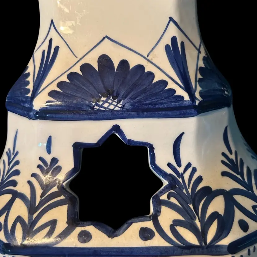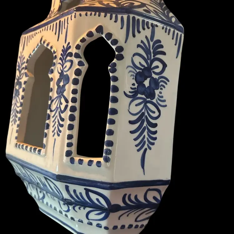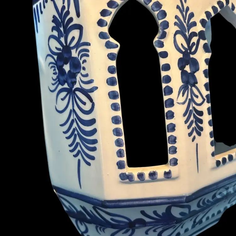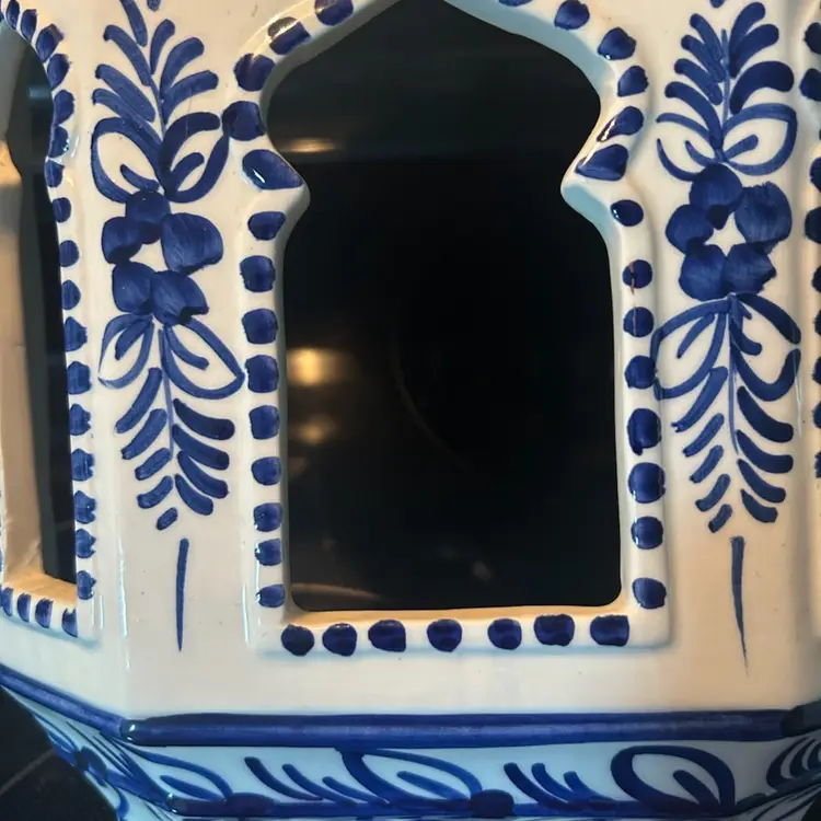 Hand painted gazebo style lamp cover is in mint condition . It is glazed ceramic/porcelain with hand painted floral pattern with cutouts to let the light through. It measures approximately 14 1/2 inches tall and 9” wide. (BSA6)