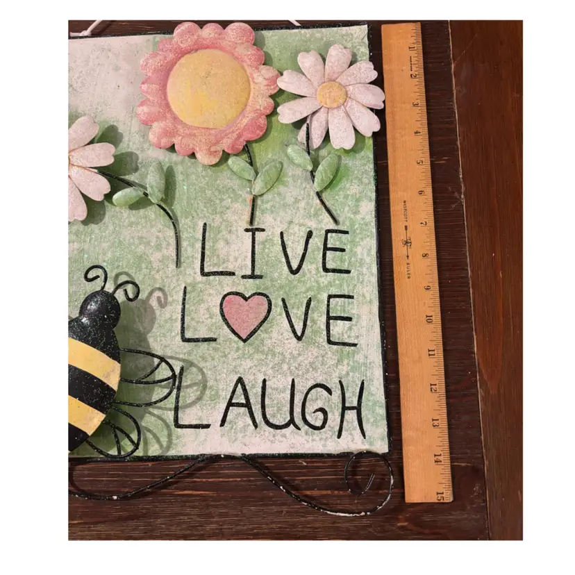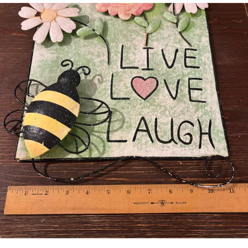 “Live Love Laugh” metal Bee and flowers wall decor sign 15” x 11”