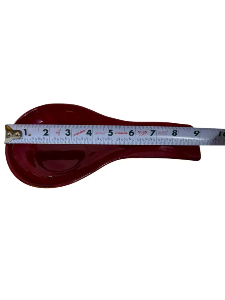 Large red spoon rest with slag dichroic glass base in yellow & red. it would also make a beautiful candle holder.