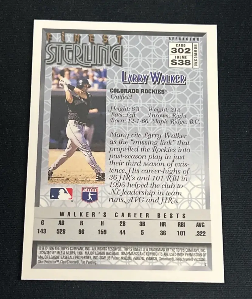 Larry Walker 1996 Topps Finest REFRACTOR #302 Uncommon S38 Colorado Rockies