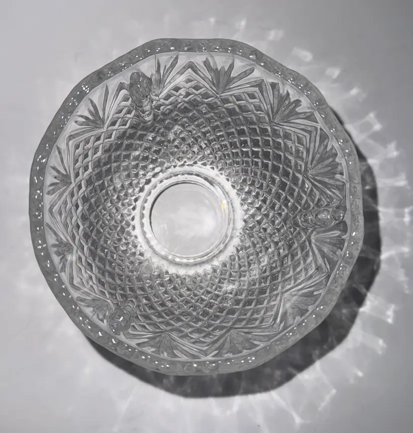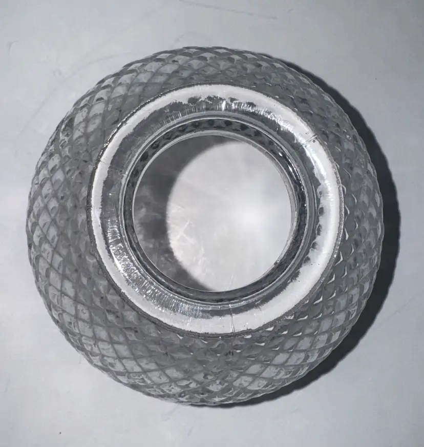 L.E. Smith No. 7524 "Pineapple" pattern crystal clear glass fairy lamp TOP ONLY. Fairy lamps are small glass candle lamps that gained popularity in the late 19th century. The shade features a distinctive diamond or pineapple pattern. The lamp TOP measures approximately 3.5 inches About 4.25” diameter Excellent condition with no breaks or chips (94124263)