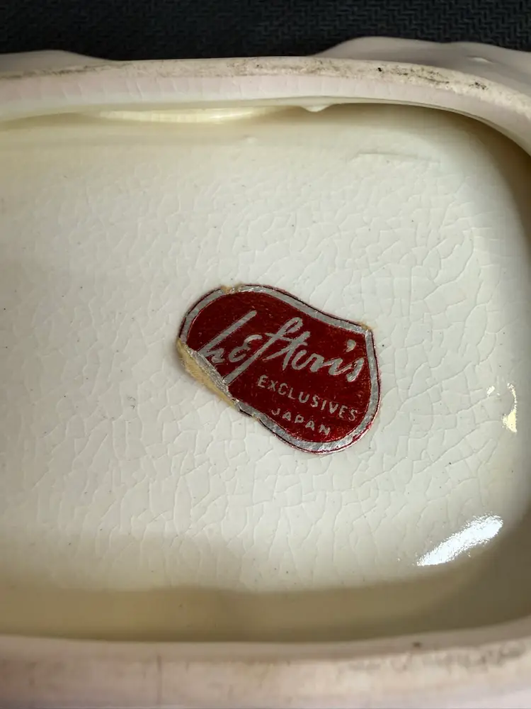 Delicate 1950’s Lefton trinket dish with rose and gold gilt edging. 5” x 4”. No chips or cracks.