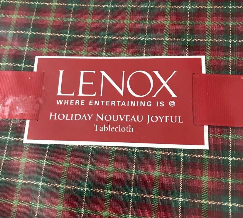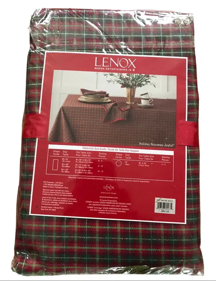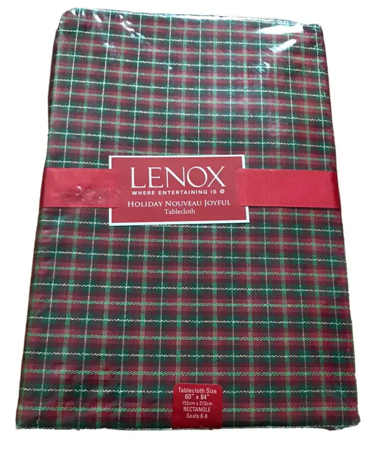 Lenox Tablecloth Holiday Dazzle Plaid Red Green Gold Christmas 60" X 84" Fabric